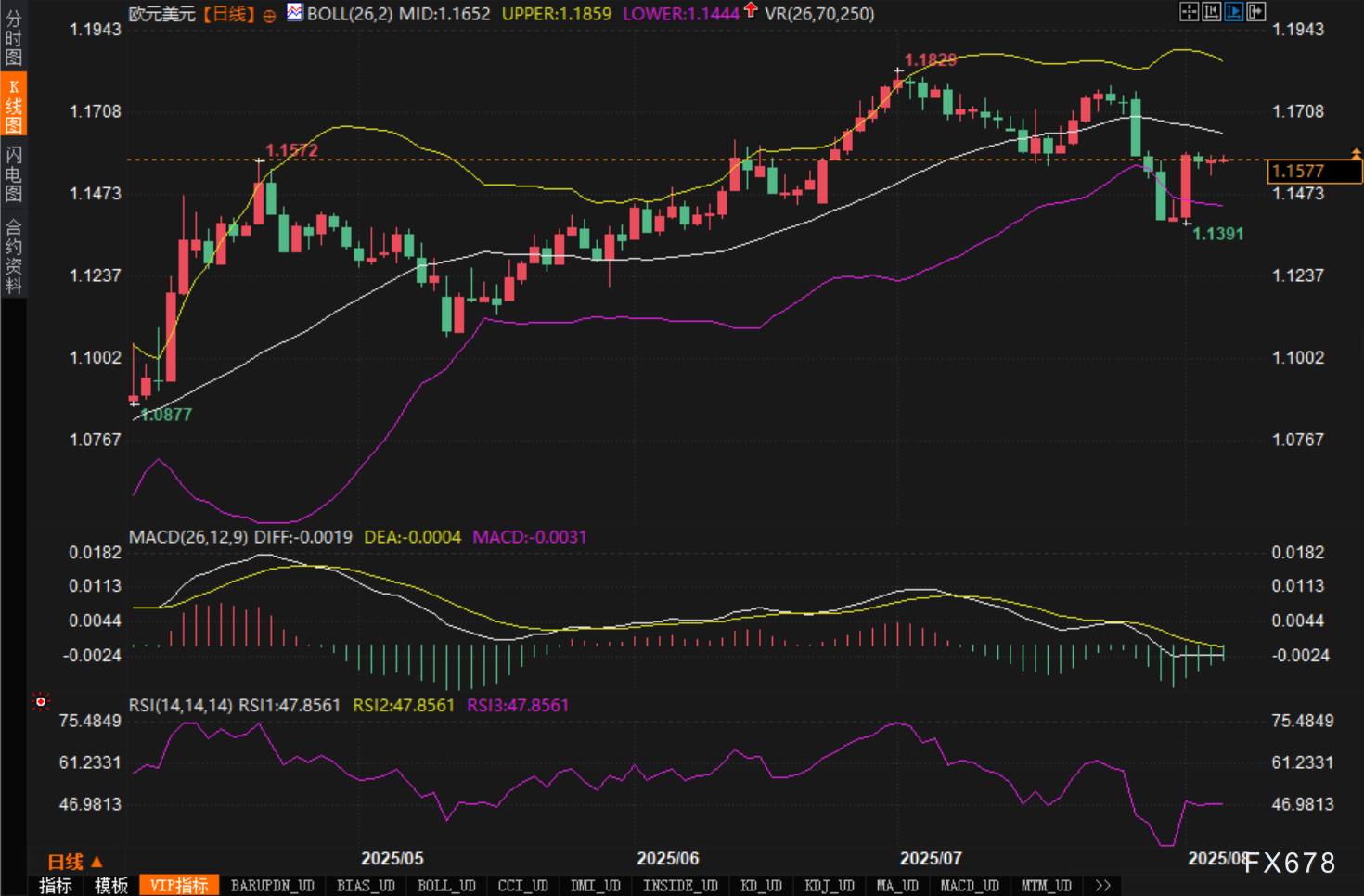 周三(8月6日),欧元/美元日内维持窄幅震荡走势,欧洲时段交投于1.1580附近,整体运行于1.1500-1.1600区间之内,处于布林中轨下方。尽管日内公布的欧元区零售销售数据表现整体偏强,但未能有效激发汇价波动。技术面维持中性格局,市场情绪谨慎观望,静待美联储官员的下一轮表态。 ![]() 欧元区6月零售销售同比增长3.1%,高于前值1.9%,亦优于市场预期的2.6%,创下2024年9月以来最大同比增幅。环比来看,6月零售销售增长0.3%,较5月修正值-0.3%实现回弹,但略低于市场预期的0.4%。从主要经济体来看,德国(0.9%)、西班牙(1.2%)和比利时(0.5%)表现突出,法国则环比下滑0.9%,对整体增幅构成一定拖累。 尽管整体数据向好,但未能撬动汇价上行动能,反映出当前市场对欧元区经济复苏的信心依然脆弱。另一方面,美国方面,ISM服务业PMI从6月的50.8降至7月的50.1,显示服务业扩张动能走弱,尤其是就业分项指标跌至46.4,凸显劳动力市场的放缓趋势。尽管价格支付分项上升至69.9,暗示通胀仍具韧性,但整体经济动能的放缓令美联储降息预期持续升温。 目前,CME FedWatch工具显示市场对美联储9月降息25个基点的预期接近90%。然而,若美联储官员释放偏鹰言论,意图对冲市场押注,或引发美元阶段性反弹。总体来看,基本面多空交织,汇价短期内缺乏方向选择的动能。 技术面: 从K线图来看,欧元/美元自7月下旬跌破布林中轨以来,走势震荡偏弱。当前价格运行于布林中轨(1.1652)下方,且贴近布林下轨(1.1444)附近反复试探,反映出下行趋势虽有放缓,但仍未扭转。 ![]() MACD指标方面,MACD柱状图连续收窄,DIFF与DEA双线运行于零轴下方,短期动能偏弱,但下行速度明显放缓,或有构筑底部的可能。 相对强弱指标RSI(14)徘徊于47.85一线,处于多空均衡区域。若能重返50上方,则有望打开技术性反弹空间;若跌破45,将再度确认弱势格局。 市场情绪观察: 市场情绪整体偏谨慎,基本面消息虽略有支撑,但技术形态及预期博弈造成短线汇价缺乏明确方向。欧元/美元目前处于“等待催化剂”的横盘阶段,市场未敢轻举妄动。 从期权隐含波动率角度看,短期波动预期处于低位,反映市场对汇价剧烈变动的定价意愿较弱。恐惧与贪婪指数保持中性水平,表明当前市场并未出现极端情绪倾斜,资金更倾向于观望而非押注趋势延续或反转。 此外,美联储官员即将展开的新一轮讲话被视作潜在触发点。若鹰派立场重新占据主导,则美元将获得短期支撑,反之则进一步打压美元,助推欧元反弹。 后市展望: 短期展望: 分析认为若后续美联储言论维持温和语调,配合美国数据走弱,则欧元/美元有望挑战1.1620与1.1660阻力区域,形成阶段性反弹。但若美联储态度鹰派或通胀预期再度上行,美元或迅速走强,欧元/美元将面临1.1500及1.1450双重技术支撑考验。 中长期展望: 从中期视角看,欧元区经济修复尚未稳固,法国消费数据的疲软亦提示内部差异显著,欧央行政策宽松预期仍存。分析认为若美国通胀持续居高、就业市场显著修复,美元中期仍具支撑,汇价恐难突破1.1700关键阻力区间; 但考虑到美国货币政策转向的周期性特征,若9月起进入实质性降息通道,届时欧元或迎来阶段性强势,1.1800上方空间值得关注。 ![]() |