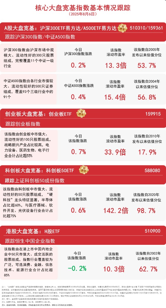 今日沪指低开高走上涨0.45%,逼近年内高点,全市场成交额1.76亿元,较上日放量超1400亿元,两市超3300只个股上涨,板块题材上,PEEK材料、军工装备、人形机器人板块走高,医药板块调整;港股全天震荡,泡泡玛特、蜜雪集团等新消费股活跃。截至收盘,中证A500指数上涨0.4%,沪深300指数上涨0.2%,创业板指数上涨0.7%,上证科创板50成份指数上涨0.6%,恒生中国企业指数下跌0.2%。 据报道,截至8月5日,A市场融资融券余额达2万亿元,自2015年7月1日以来再次突破这一关口。与此同时,A股市场交投活跃度持续凸显,单日融资买入额达1635.6亿元,自7月17日以来连续14个交易日突破1500亿元。