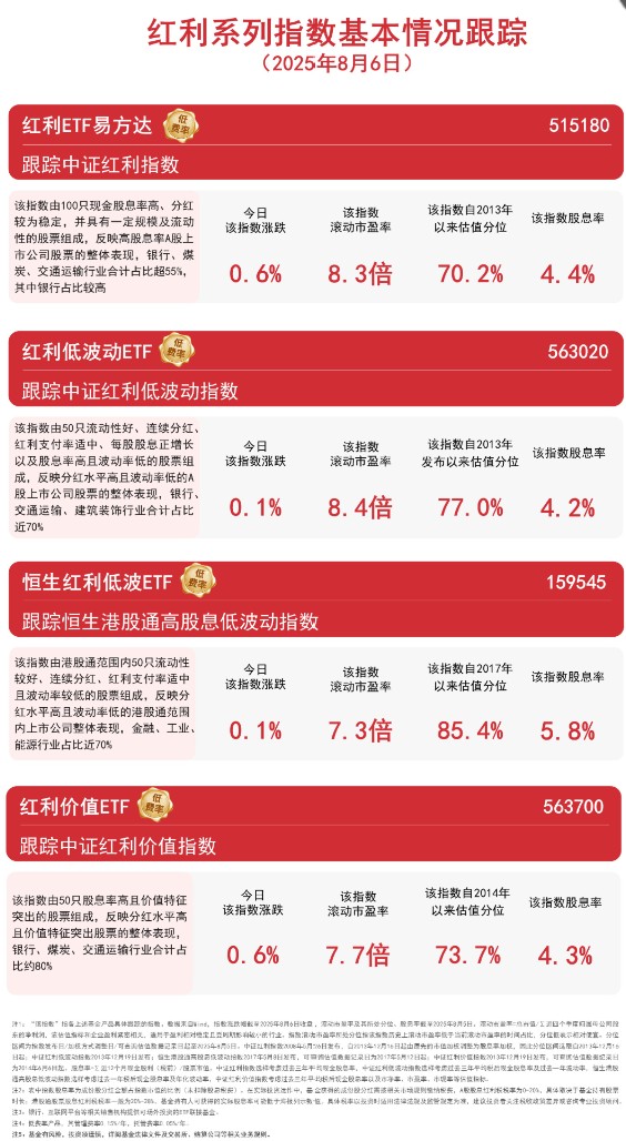 0红利板块集体上涨,截至收盘,中证红利指数上涨0.6%,中证红利价值指数上涨0.6%,中证红利低波动指数上涨0.1%,恒生港股通高股息低波动指数上涨0.1%。Wind数据显示,恒生红利低波ETF(159545)今日获4020万份净申购 ...