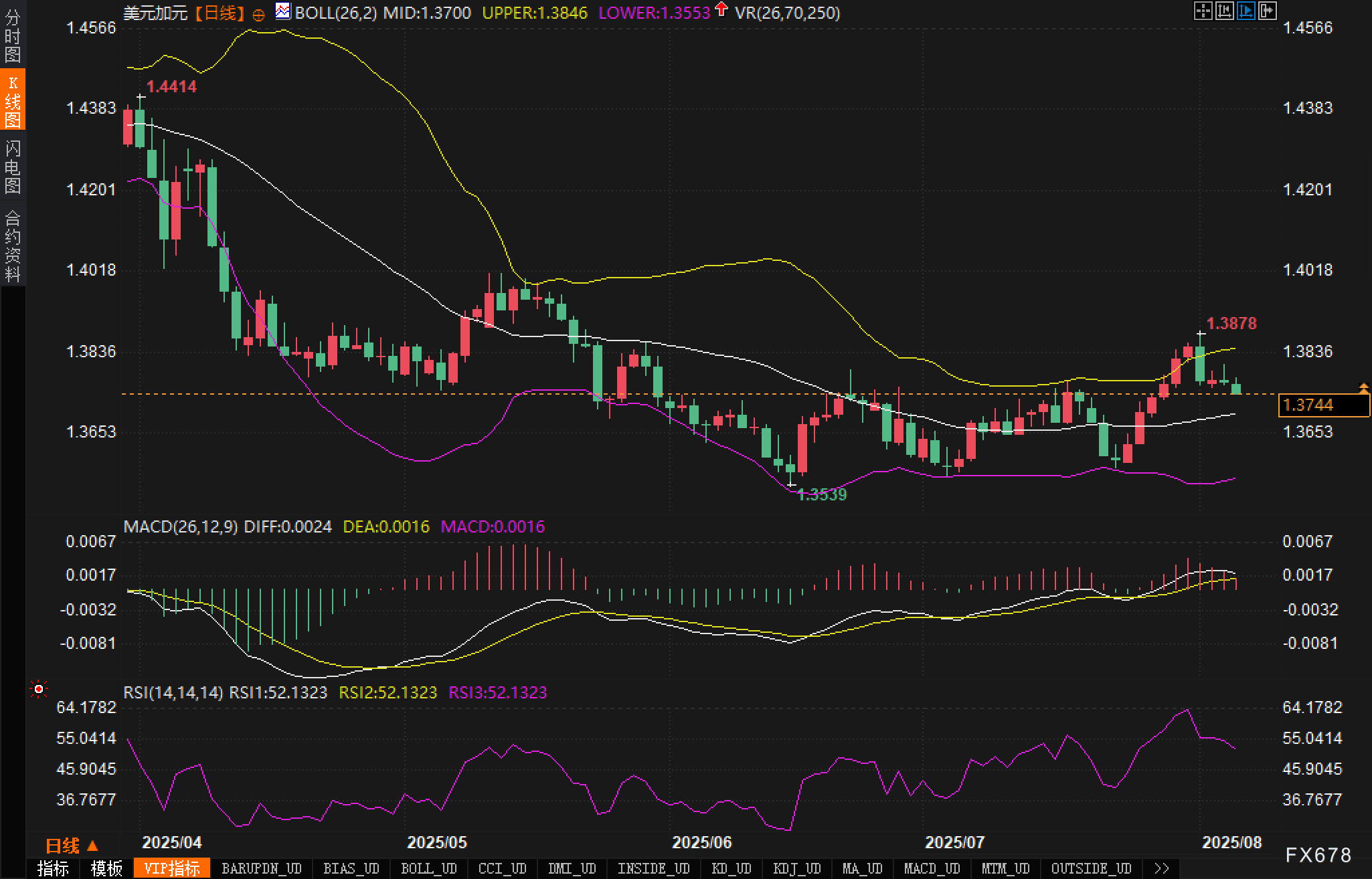 周三(8月6日),美元/加元在北美时段维持窄幅震荡,交投于1.3750附近,日内小幅走低。此前汇价于8月1日创下1.3878的近两个月高点,但随后连续回调,反映出市场对前期上涨力度的分歧加剧。近期美国非农数据走软打压美元买盘情绪,加之原油价格企稳与风险偏好回暖,给予加元一定支撑。然而,缺乏新一轮基本面催化因素的背景下,汇价短期走势仍受制于市场情绪与技术结构的博弈。 ![]() 近期,美国非农就业数据低于预期,引发市场对美联储政策前景的重新定价,美元指数自高位承压回落,间接带动美元/加元自1.3878高位转入调整区间。尽管美债收益率整体维持坚挺,但美元内部驱动动能减弱,推动汇价走出一定幅度的技术性回撤。 加元方面,整体走势表现抗跌,部分得益于原油价格的稳定性支撑,加上市场风险偏好改善,令避险美元短线承压。与此同时,Fitch评级机构在最新发布的《加拿大消费者监测报告》中指出,加拿大消费者支出正在放缓,2025年预计增长2.0%,而2026年或进一步下降至0.7%。就业市场冷却、服务消费停滞及对美出口的不确定性上升,成为抑制消费和增长的核心因素。 尽管加拿大央行在上次会议中选择按兵不动,但市场普遍预期年底前仍将降息至2.25%。当前通胀仍维持在3%左右,远高于2%的目标,为货币政策路径添加不确定性。若本周即将公布的7月就业数据和薪资增速再次走软,可能会加快市场对降息节奏的押注,从而影响加元表现。 技术面: 当前日线图显示,美元/加元自1.3878高点回调后,多头动能放缓,汇价正测试布林带中轨1.3700一线支撑。整体布林带结构维持上轨发散、下轨企稳形态,表明波动率有所扩大但短线进入整理阶段。 ![]() RSI指标运行于52附近,处于相对中性区域,未见超买或超卖信号,结合当前K线形态看,汇价倾向于进入盘整格局,等待新一轮方向选择。 从结构上看,汇价前期跌至1.3539后筑底反弹,1.3878构成局部顶部,当前波动区间初步构筑在1.3550—1.3850之间。分析认为短期支撑关注布林中轨1.3700一线;上方阻力位分别为1.3780与1.3878。 市场情绪观察: 市场情绪当前处于高度谨慎状态。美元/加元虽在上周形成强势拉升,但上攻缺乏持续成交量配合,显示追涨意愿不足;美元在数据疲软与政策前景未明的双重制约下反弹乏力。 情绪指标方面,RSI中性运行未能提供明确方向,MACD动能钝化也强化了市场观望态度。期权市场隐含波动率维持低位,显示交易员对未来大幅波动并不抱有强烈预期。加元利率预期与美国货币政策前景的错位,成为压制汇价单边运行的重要情绪变量。 此外,近期加拿大国内关于消费者支出与就业市场的悲观预期,也加剧了市场对加元基本面的疑虑。虽然短线多头仍在关键支撑位顽强防守,但汇价缺乏进一步突破动能,情绪面更倾向谨慎偏空。 后市展望: 短期展望: 在本周缺乏高能级事件推动的背景下,预计美元/加元将在1.3650—1.3850区间内震荡整理,市场将密切关注加拿大就业报告。 分析认为若加拿大就业数据弱于预期,叠加薪资增长放缓,可能强化市场对加拿大央行年内降息的押注,从而压制加元表现,推动汇价测试1.3878阻力区域,甚至冲击1.3900整数关口; 反之,若数据表现强劲,短线或将引发加元反弹,美元/加元下探1.3700甚至1.3650支撑区域的概率上升。 中长期展望: 从趋势结构看,美元/加元在1.3539处获得支撑,后续虽现反弹但上行阻力显著。分析认为若后续美国数据继续走弱且美联储政策转向明确,则美元中长期可能面临调整压力; 若加拿大经济数据未出现实质性恶化,加元或有望维持相对稳定,届时美元/加元将倾向于维持中长期横盘整理格局,上下限区间可能维持在1.3500—1.3900之间。 ![]() |