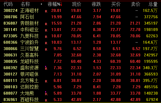 7日,沪指窄幅震荡上扬,盘中续创年内新高,连续4日收阳;脑机接口概念尾盘崛起。港股亦拉升,恒生指数一度涨近1%。 具体来看,沪指盘中维持上扬态势,盘中最高攀升至3645.12点,刷新年内高点;创业板指走势疲弱。截至收盘,沪指涨0.16%报3639.67点,深证成指跌0.18%报11157.94点,创业板指跌0.68%报2342.86点,上证50指数翻红,沪深北三市合计成交18528亿元,较此前一日增加约930亿元。 场内超3000股飘绿,医药、保险、钢铁等板块疲弱;半导体板块拉升,东芯股份涨停续创历史新高,富满微、斯达半导等亦涨停;稀土板块午后爆发,正海磁材、阿石创等涨停;脑机接口概念尾盘崛起,翔宇医疗涨约12%,际华集团、创新医疗双双涨停;消费电子概念上扬,胜蓝股份、卓兆点胶等涨超10%。值得注意的是,长城军工尾盘再度涨停续创新高,年内已累计大涨近3.4倍。而5连板的倍加洁则跳水跌停,盘中上演“天地板”走势。 港股方面,康方生物跌超8%,药明生物、君实生物跌约5%,药明康德跌超4%;金沙中国涨约5%。 稀土板块爆发 稀土板块午后强势拉升,截至收盘,正海磁材、阿石创20%涨停,中科磁业涨约13%,九菱科技涨约10%。 ![]() 行业方面,8月稀土产业链进入传统消费旺季,下游需求回升带动采购增加,据SMM,磁材行业部分大厂订单已经排产至9月中旬,出口管制陆续放松,国内及出口订单均环比走强。供给端,受中美关税冲突及缅甸国内政治冲突因素影响,上半年国内稀土产品进口量显著下降。 湘财证券指出,供应持续紧张,需求稳中有增,短期价格支撑较强导致市场看涨情绪增强,预计后市仍将维持上涨趋势。建议关注上游稀土资源企业的供需边际好转,一方面是供给收缩预期的强化,另一方面是出口管制放松带来的需求边际增量,相关稀土资源企业有望受益稀土资源价格上涨带来的机会。中长期角度,随着稀土价格稳步回升,下游磁材企业盈利有望持续修复。 半导体板块拉升 半导体板块盘中发力走高,截至收盘,东芯股份20%涨停续创新高,富满微、斯达半导亦涨停,新恒汇涨超11%,国科微涨逾9%。 ![]() 消息面上,据央视新闻报道,当地时间8月6日,美国总统特朗普表示,美国将对芯片和半导体征收约100%的关税。特朗普称,如果在美国制造,将不收取任何费用。 申港证券近日指出,中美AI竞争或进入全球输出标准和各自高端算力芯片的竞争阶段,其后续出口管制措施或进一步限制我国芯片、半导体制造设备、材料等环节进口。根据EEPW消息,以长江存储为代表的国产芯片龙头企业在积极推动制造设备国产化替代,其首条全国产化的产线将于2025年下半年导入试产,以减少对外国设备的依赖。建议关注自主可控技术突破、国产代工良率提升、传统半导体周期复苏的提振。