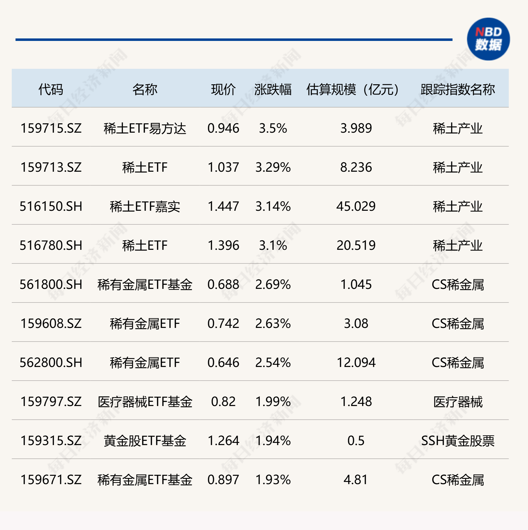 每经记者|叶峰 每经编辑|肖芮冬 市场全天震荡分化,沪指再创年内新高,创业板指调整。从板块来看,稀土永磁概念股午后爆发,半导体板块震荡走强,医疗器械概念股一度冲高。下跌方面,创新药概念股展开调整。 ETF上涨方面,稀土相关ETF涨超3%。 有券商表示,稀土作为我国定价、下游应用广泛且全球领先的优势产业,板块整体关注度有望显著提高。此外,“类供改”政策催化叠加“大国利器”地位带来了价值重估的机会。同时,永磁板块受益于人形机器人和低空经济景气高增。 下跌方面,创新药相关ETF跌约3%。 有券商表示,国内的医保政策支持与海外价值认可双主线逻辑将支撑中国创新药行情的持续。2025年,中国已经成为全球交易的核心采购区。除biotech外,传统药企加速推动创新出海浪潮。趋势上来看,跨国公司在“专利悬崖”压力下,仍需寻找优质资产,而中国研发性价比优势高,海外认可度不断提升,出海仍在加速。 封面图片来源:每日经济新闻 |