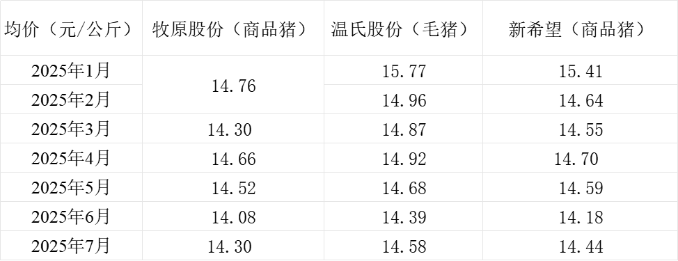 三大上市猪企牧原股份(002714.SZ)、新希望(000876.SZ)、温氏股份(300498.SZ)近日发布2025年7月生猪销售情况简报。 ![]() 三大上市猪企2025年销售情况。制图澎湃新闻 从销量来看,环比方面牧原股份新希望环比下降,温氏股份增长,同比方面三大猪企均增长。 7月,牧原股份销售商品猪635.5万头,同比增长13.02%,环比下降9.5%。温氏股份销售生猪316.48万头(其中毛猪和鲜品264.58万头,仔猪51.9万头),环比增长5.24%,同比增长36.22%。新希望销售生猪130.25万头,环比下降2.06%,同比增长3.21%。 温氏股份表示,7月公司生猪销量同比上升,主要原因是受公司前期投苗增加以及外卖仔猪影响。 ![]() 三大上市猪企销量情况。制表澎湃新闻 从销售收入来看,三大猪企环比同比均下降。 7月,牧原股份商品猪销售收入116.39亿元,同比下降10.41%,环比下降9.1%。温氏股份销售生猪收入48.77亿元,环比下降0.87%,同比下降8.72%。新希望销售生猪收入18.02亿元,环比下降3.67%,同比下降24.62%。 ![]() 三大上市猪企销售收入情况。制表澎湃新闻 从销售均价来看,三大猪企销售均价环比均上升,同比均下降。 7月,牧原股份商品猪销售均价14.3元/公斤,同比下降21.86%,环比上升1.6%。温氏股份毛猪销售均价14.58元/公斤,环比上升1.32%,同比下降23.06%。新希望商品猪销售均价14.44元/公斤,环比上升1.83%,同比下降23.19%。 ![]() 三大上市猪企销售均价情况。制表澎湃新闻