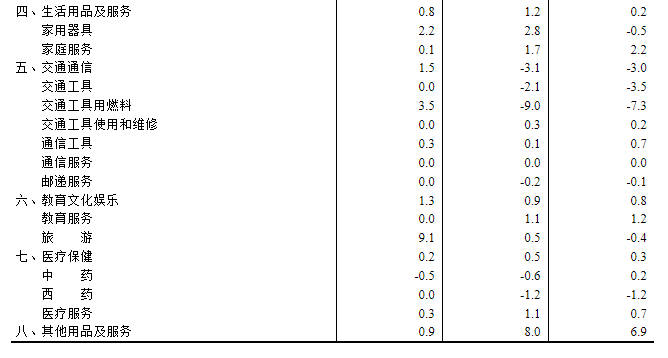 02025年7月份居民消费价格同比持平 2025年7月份,全国居民消费价格同比持平。其中,城市持平,农村下降0.3%;食品价格下降1.6%,非食品价格上涨0.3%;消费品价格下降0.4%,服务价格上涨0.5%。1—7月平均,全国 ...