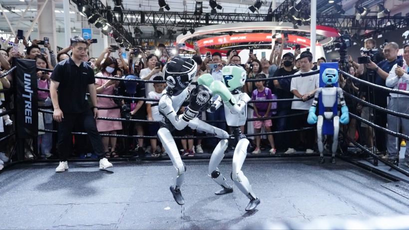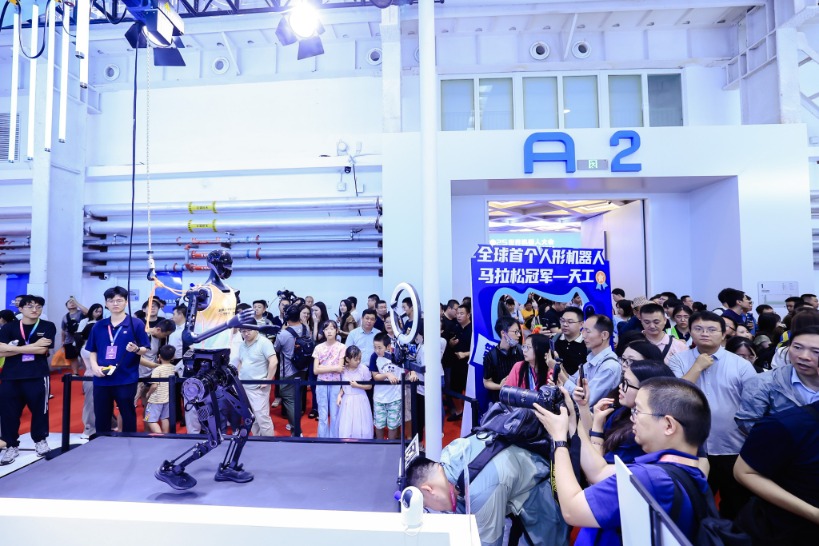 8月8日,北京,2025世界机器人大会(WRC)正式开幕。 北京人形机器人创新中心(国地共建具身智能机器人创新中心)的“天工2.0”人形机器人化身主持人登上开幕式的舞台;展区内,11台优必选Walker S2人形机器人双臂翻飞,通过群脑网络实现协同作业;不远处,带着新款人形机器人R1和机器狗A2参会的宇树科技展台又一次被围得水泄不通……WRC首日,中国企业便以硬科技点燃全场。 ![]() 2025世界机器人大会(WRC)现场。澎湃新闻记者秦盛摄 集群爆发:从炫技到实用 本次大会以“让机器人更智慧让具身体更智能”为主题,同期还将举办世界机器人博览会和大赛,强调“机器人+”应用成效。大会设置了创新馆、应用馆、技术馆3大展馆,汇聚200余家国内外机器人企业,其中包括50余家人形机器人整机企业,展出1500余件展品,还将有100余款机器人、传感器、灵巧手、微型行星滚柱丝杠等首发新品。 在展台上,优必选首次展示了突破性的人形机器人群体智能技术,通过群脑网络2.0的整体调度与任务分配管理,多台Walker S2、Cruzr S2,与UQI优奇顶升移动机器人Wali瓦力U600、无人物流车Chitu赤兔协同,展现了从物料入库搬运到智能分拣的全流程作业。 同时,现场还有11台工业人形机器人Walker S1,通过精确视觉识别和在线轨迹规划算法,灵巧手和仿生手臂协同操作,完成了复杂的动态随机分拣任务。 ![]() 优必选展示人形机器人群体智能技术。澎湃新闻记者秦盛摄 宇树科技首次亮相了两款全新产品,包括人形机器人R1和四足机器人A2,在现场与人形机器人G1格斗款、四足机器人Go2、工业四足机器人B2及B2-W共同展示了宇树的最新技术成果。 重约25kg的R1在发布之时便以3.99万元的起售价格再次刷新人形机器人“底价”,同时还集成了语音和图像多模态大模型,支持打拳、跑步等复杂动作。在现场,R1还首次进行了“翻跟头”的动态展示。 ![]() 宇树科技的G1格斗款人形机器人在现场进行表演。 星动纪元(ROBOTERA)携星动L7、星动Q5、星动XHAND1、星动XHAND lite等核心产品登场,全方位展现了其在具身智能领域 “软硬一体化全栈自研” 的硬实力。 在现场,身高171cm、体重65kg的星动L7在现场向观众展现了360度旋转跳的动作,引来阵阵欢呼。同时,星动L7还在物流模拟场景中展示了多台机器人协作能力。机器人界的“小腰精”星动Q5在现场遥操作演示中,精准复刻了操作人员全身动作,同时也能完成下蹲捡瓶子等动作。 ![]() 星动Q5在现场进行遥操作展示。 智平方也带来了通用智能机器人“爱宝”,借助智平方全栈自研的端到端具身大模型GOVLA,在“超强大脑”AlphaBrain的加持下,仅需一款机器人便实现了在模拟工厂搬箱子码垛、在饮品吧做咖啡冰淇淋、在舞台敲架子鼓等多项工作,还提前一天学习为现场观众敲了一首《北京欢迎你》。