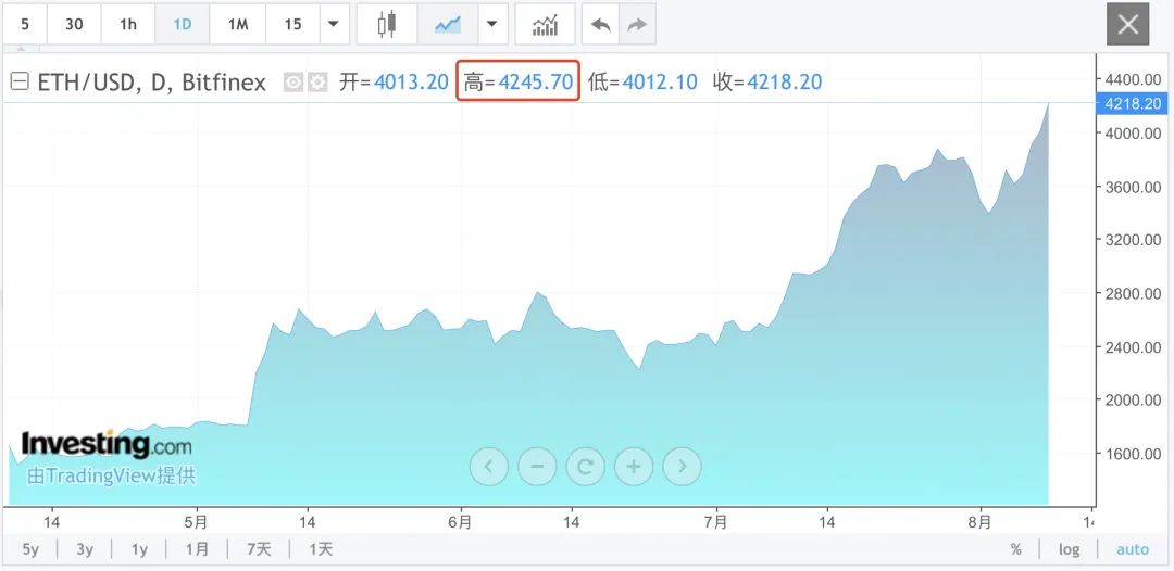 0加密货币市场狂飙。 今日,以太坊价格大幅走强,日内一度暴涨超8%,最高报4245.7美元,近4个月累计涨幅扩大至200%。受此影响,最近24小时,全球共有超过10万人爆仓,爆仓总金额达3.69亿美元(约合人民币26.5 ...