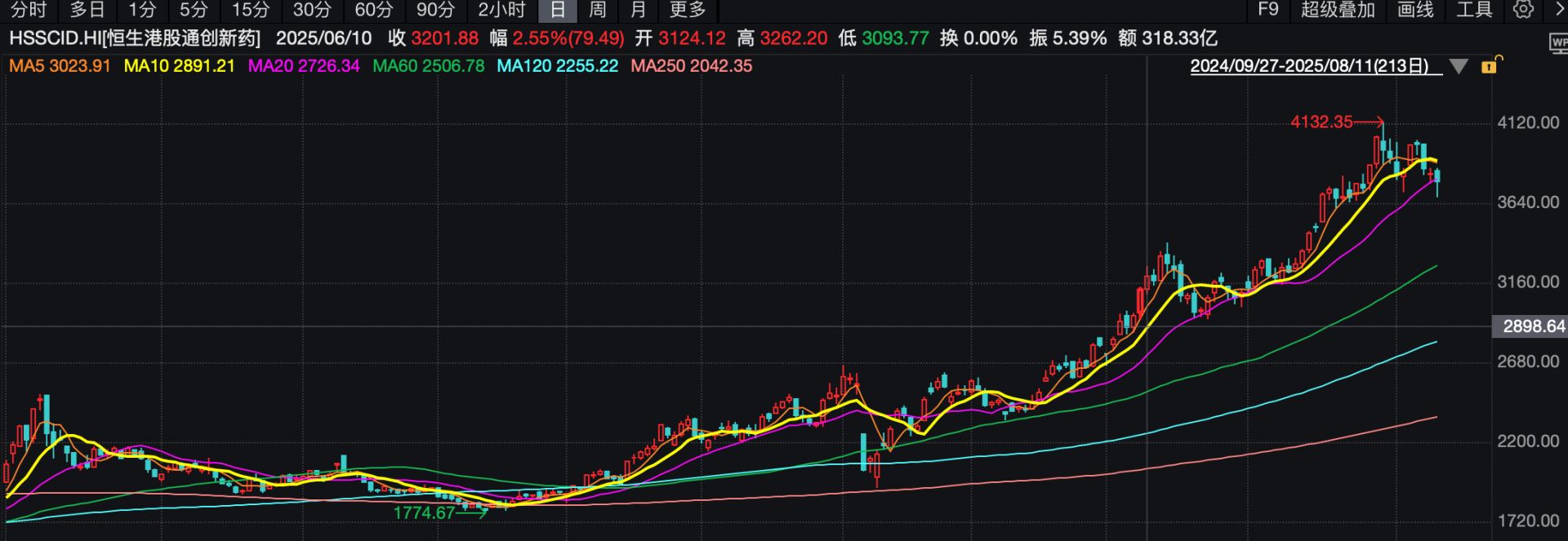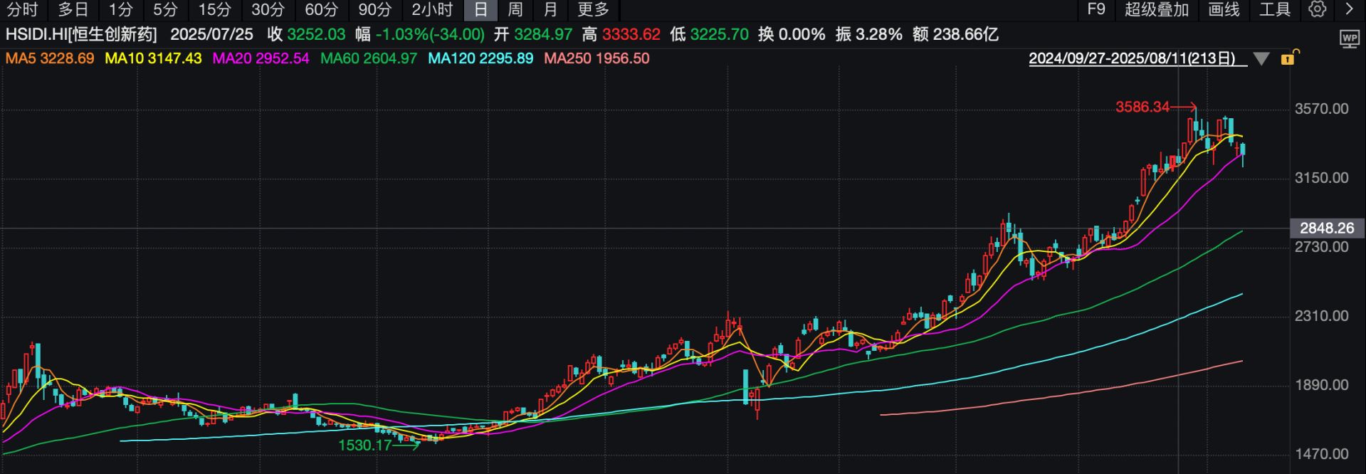 每经记者|曾子建 每经编辑|叶峰 8月11日,根据恒生指数公司公布的指数调整方案,恒生创新药指数、恒生港股通创新药指数成分股调整正式生效。 其中,市场关注度较高的是,上述两大指数明确剔除CXO(医药合同外包服务组织)公司,其中包括三家药明系公司,药明康德、药明生物、药明合联等均被剔除。今日早间,两大指数均一度下跌逾3%。 调整方案正式生效,两大指数早盘回落 根据恒生指数公司此前公布的调整方案,恒生港股通创新药指数剔除药明康德、药明生物、药明合联、金斯瑞生物科技、晶泰控股5家公司。 恒生创新药指数剔除金斯瑞生物科技、药明康德、药明生物、药明合联、晶泰控股、巨子生物、华昊中天生物7家公司。 今年以来,恒生创新药指数和恒生港股通创新药指数无疑是港股市场表现最强的两大行业指数。截至8月8日,上述两大指数年内涨幅均实现翻倍。但今日早间,两大指数表现双双承压,早盘跌幅均一度超过3%。