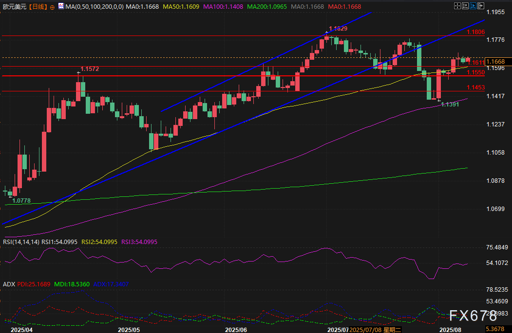 周一(8月11日)亚市早盘,欧元兑美元震荡上涨0.26%,现报1.1670,得益于欧美央行之间的利率政策分歧,欧元稳步走强。过去五个交易日,欧元兑美元汇率上涨逾1%。就目前而言,在欧美央行相继发挥决定性作用的背景下,看涨情绪依然存在。目前,多头占据主导地位,主要因为市场预期美国将出现更低的利率环境,这可能会进一步削弱美元。这一预期已成为当前走势背后的主要推动力,如果这种预期持续下去,短期内我们可能会看到欧元兑美元出现更持续的买盘。 ![]() 美联储和欧洲央行之间的分歧仍然很大:美国维持4.5%的利率,而欧洲的存款利率维持在2.00%。然而,开始发生转变的是未来的政策前景。美联储已开始暗示,可能在近期进入降息周期,这可能会显著降低美元的相对吸引力。 这种预期已经反映在市场上。根据芝商所的数据,9月17日将利率降至4.25%的概率已升至89.4%。此外,对于10月29日的会议,进一步降息至4.00%的概率为57.3%。 ![]() ![]() 这种前景的转变正开始影响美元的强势。尽管美国的利率仍然高于欧洲,但市场正在消化美国预期收益率下降的环境,这可能会减少对以美元计价的资产的需求。如果对美联储降息的预期得到巩固,欧元可能会继续取得进展,特别是如果欧洲央行保持其更稳定的政策路线。 美元的疲软正在成为结构性问题吗? 通过追踪美元兑一篮子货币的美元指数的表现,可以更明显地看出美元的疲软。近日,该指数已跌破100整数关口,目前徘徊在98关口附近,暗示美元可能开启新一轮的看跌行情。 这种下跌似乎与市场对美联储将采取更宽松政策的预期直接相关,如果美元指数继续走低,抛售压力可能会进一步加大。在这种情况下,欧元兑美元可能会保持上行势头,这得益于资本从美元转向前景更稳定的货币。 ![]() 欧元走势分析 欧元价格在试图巩固看涨趋势:尽管欧元在最近几周出现了明显的回调,但新的看涨动力已经开始形成,旨在收复近几个月的高点。如果买盘压力持续,该货币兑可能会成功发展成更大级别的上涨趋势。 相对强弱指数:相对强弱指数已回升至50水平以上,表明看涨动能正在恢复。如果这种趋势持续下去,可能会强化短期上行倾向。 平均趋向指数:平均趋向指数线仍低于20,表明市场波动性较低。除非这种技术状况发生变化,否则市场可能会继续在短暂的上涨和横盘震荡之间交替,直到出现更强的催化剂。 支撑阻力 主要阻力位:1.1806,该水平标志着年度高点,是买家面临的最重要障碍。持续突破该水平可能会打开新的高点之门,确认一个更强劲的看涨阶段。 初步支撑位:1.1609,与50日均线一致,该区域可能在短期回调时充当临时技术屏障,价格守在该水平上方对于保持看涨倾向至关重要。 关键支撑位:1.1452,该水平对应23.6%斐波那契回撤位,行情如果向下发展,该位置需要重点关注。回到该区域可能标志着结构性转变,如果买盘动能未能恢复,可能会为短期看跌趋势铺平道路。 ![]() 北京时间13:43,欧元兑美元现报1.1672/73。 ![]() |