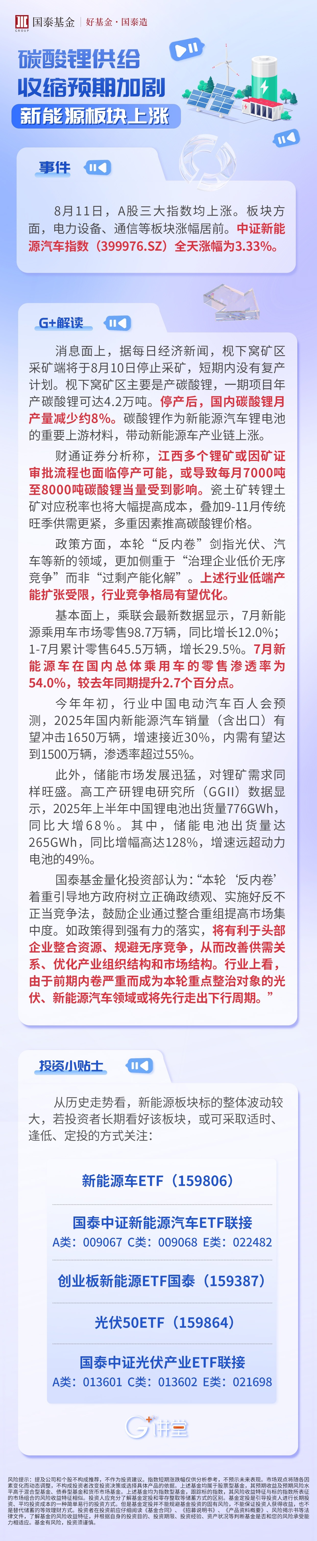 碳酸锂供给收缩预期加剧,新能源车ETF(159806)大涨3.52%