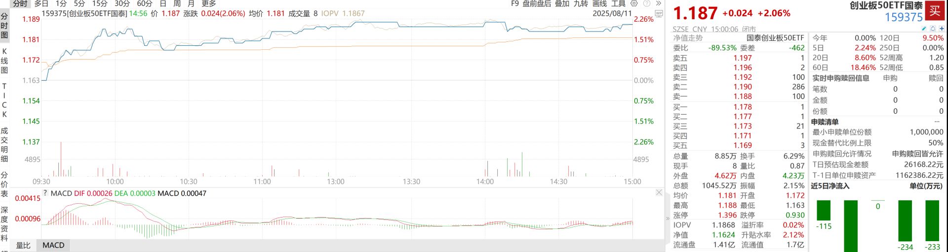 每经编辑|肖芮冬 8月11日,大盘全天高位运行,创业板指领涨,沪指录得6连阳。截至收盘,上证指数涨0.34%报3647.55点,深证成指涨1.46%,创业板指涨1.96%,北证50涨1.18%,科创50涨0.59%,万得全A涨0.99%,万得A500涨0.63%,中证A500涨0.71%。A股全天成交1.85万亿元。 科创板100ETF(588120)、创业板50ETF(159375)今日市场表现 数据来源:Wind 【上涨原因分析】 盘面上,午后指数窄幅震荡,题材轮动提速,创新药、液冷、智能体等多个早盘涨幅落后热门题材轮番上攻,资金充沛情况下,市场多点开花,全天超4000股上涨,沪指距前高已不到20个基点。 政策层面,近期高层持续推进“反内卷”,强调重点行业产能治理,而非全面控制,这将助力光伏、新能源车等新兴产业高质量发展。同时,国务院发布“人工智能+”政策,推动人工智能规模化商业化应用,加快在经济社会发展各领域的普及和深度融合。自年初至今,政策层对以上证指数为代表的资本市场表现高度重视,并出台相关政策鼓励中央汇金、保险等长线资金入市,有望构成中长期支撑市场的关键动能。 消息面上,新能源领域,龙头宁德时代8月11日在互动平台表示,宜春项目采矿许可证8月9日到期后已暂停开采作业,正按相关规定尽快办理采矿证延续申请。碳酸锂期货所有合约罕见均触及涨停,其中主力合约开盘直接涨停,涨幅8%,报81000元/吨。瑞达期货表示,碳酸锂基本面或处于供给小幅提升、需求逐步回暖的阶段,锂价波动较大,产业预期逐步向好,带动能源金属板块行情回暖。 AI大模型及算力领域,高盛近期预计,2025年、2026年800G光模块销量将分别达到1990万和3350万单位,较此前预测分别上调10%和58%。华安证券认为,GPT-5最新发布将推动国内外AI大模型厂商新一轮竞争,聚焦AI编程、AI Agent产品升级及商业化应用,长期来看将拉动AI算力需求,推动相关产业链及硬件基础设施发展,进一步带动AI大模型及算力相关成分股的情绪上升。 机器人领域,8月8日~8月12日,以“让机器人更智慧,让具身体更智能”为主题的2025世界机器人大会在北京举办,本届博览会汇聚200余家国内外优秀机器人企业的1500余件展品。机器人及智能制造行业有望进入快速落地期,根据工业和信息化部数据,2025年上半年,我国机器人产业营业收入同比增长27.8%,工业机器人和服务机器人产量同比分别增长35.6%和25.5%,连续12年成为全球最大工业机器人市场,2024年工业机器人市场销量达30.2万套。上述产业景气度或为板块提供了一定的基本面支撑。(风险提示:个股仅作为行业基本面说明,不作为个股推荐。) 进入中报期,近期科创板100 ETF(588120)指数多只成分股在披露季前发布业绩预告或回购等利好消息,市场情绪因此显著升温。以生益电子为例,公司预计2025年上半年归母净利润同比大增432%~471%,并同步启动股份回购,或传递出管理层对未来经营的信心。此外,医疗器械领域成分股有望在政策及招采数据回暖的推动下受益。短期维度,中报能否兑现是接下来行情的关键验证点之一,若多数公司能够兑现或超越此前业绩增长的预期,或将为中短期走势提供更为坚实的基本面支撑。同时,也需要提醒各位投资者业绩不达预期带来的潜在风险,短线杠杆资金可能快速撤离,带来较大波动。(风险提示:个股仅作为行业基本面说明,不作为个股推荐。) 流动性角度,在当前经济稳定复苏的环境下,市场风险偏好的变化主导市场节奏,流动性驱动仍是现阶段股票市场的主要特点。7月政治局会议强调政策的连续性与稳定性,宏观流动性或将继续保持宽松状态。消息面上,中国人民银行公告于上周开展7000亿元3个月期买断式逆回购操作,此次操作或为平滑财政缴税高峰和提前对冲季末流动性压力。预计央行有望继续通过逆回购、买断式逆回购等多种货币政策工具,加强对中短期流动性的调节,保持流动性充裕,进一步实施好适度宽松的货币政策。因此从流动性和市场情绪的角度,短期资金面总体上偏宽松的条件有望提振市场对风险资产偏好。 【后市展望】 短期维度,主要关注中报整体情况及事件催化。短期行情相对更依赖中报业绩兑现度以及政策、题材催化。目前科创板100/创业板50市盈率TTM处于过去5年41%/45%分位数,估值较历史高点仍有一定空间。若8月集中披露的龙头公司业绩优于或与预期一致,叠加央行货币政策有望维持宽松,科创板100或有望在“题材+业绩”双驱动下维持结构性上行。从事件催化的角度,建议投资者关注后续机器人技术更新、国产替代政策、新AI模型例如DeepSeek R2发布等政策及产业动态。 中长期走势更多取决于产业成长的可持续性、政策支持的延续性。科创100成分股集中在半导体、人工智能、智能制造、医疗器械等赛道,这些行业普遍有较高的成长属性。中长期投资者可以重点关注以下方面: 1、产业成长周期角度,半导体周期回暖的节奏、AI算力需求曲线、机器人渗透率提升速度,以及医疗器械的政策与集采动态。 2、龙头公司研发与技术迭代进展角度,需要持续跟踪龙头公司研发投入占比、专利布局与新品落地情况,判断其护城河是否在扩张。 3、估值消化能力角度,科创板公司估值绝对值普遍较高,短期来看市场对成长型公司的估值宽容度较高,背后隐含了市场对成分股未来高成长的预期,中长期维度仍需结合盈利增速判断估值消化能力。 4、政策与国际环境角度,建议投资者关注全球供应链、国际技