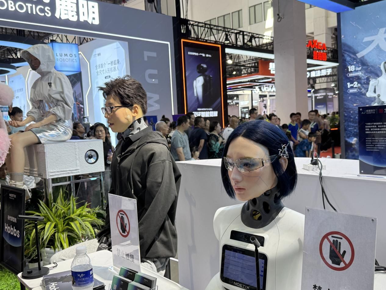 本次大会上,松延动力能够模仿人类面部表情的仿生机器人也得到关注。不少观众来到展台给自己的面部肌肉来上一段“广播体操”,“挑战”仿生机器人的模仿能力。记者在现场注意到,今年5月推出的第二代仿生机器人“小诺”已经有了新的进化,不再是单个的头部,还结合导览的需要,加上了轮式的下半身。 在韩深任看来,在泛化性、准确性要求没有那么高的细分场景中,机器人会先走出来,然后再往一些需要精细化操作的场景过渡。而松延动力的下一步计划是在第三季度完成“量产逻辑闭环”,能保证给客户带来量产化的突破。 “模型未收敛、数据不够用”,人形机器人能靠出海破局吗? 本次大会上,宇树科技创始人王兴兴在发表主旨演讲时表示,如果顺利,未来1~2年或者2~3年可以达到人形机器人的“ChatGPT时刻”,最慢的话需要3~5年。 但王兴兴同时也认为,目前机器人的硬件能力虽然是够用的,但并不足够好,想要更大规模、更低成本、更高可靠性,硬件肯定要继续完善。最大的难点还是目前整个具身智能AI(人工智能)模型在本质上还没有达到一个阶段性突破的临界点。 在松延动力的视角下,也有着相似的看法。而“ChatGPT时刻”的到来,仍需要建立在模型跟数据的落地跑通之上。 在韩深任看来,人形机器人行业仍处于“模型未收敛、数据不够用”的阶段,产业尚未达成统一的范式。 目前来看,各家除了在模型上“各显神通”,在数据问题上也有着不一样的解法。 如,银河通用等企业押注“合成数据”,松延动力则是选择通过“数据采集计划”,建立数据生态,破解数据积累不够的卡点。据姜哲源此前透露,松延动力在今年5月的生态战略大会的闭门会上,就上肢操作领域发布了一项数据采集计划,做了一套低成本的数据采集设备,希望借此实现真实场景数据规模化的采集。