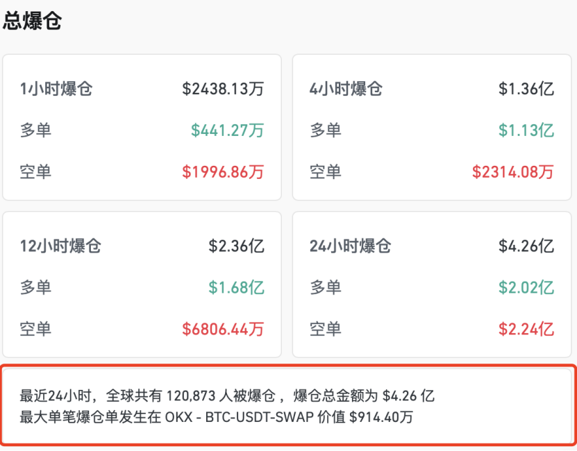 0加密货币集体狂飙。 8月11日,加密货币市场全线爆发,比特币一度涨至122370美元/枚,以太坊价格一度涨至4350美元/枚,创2021年12月以来的新高。受此影响,最近24小时内,全球加密货币市场超12万人爆仓。 ...