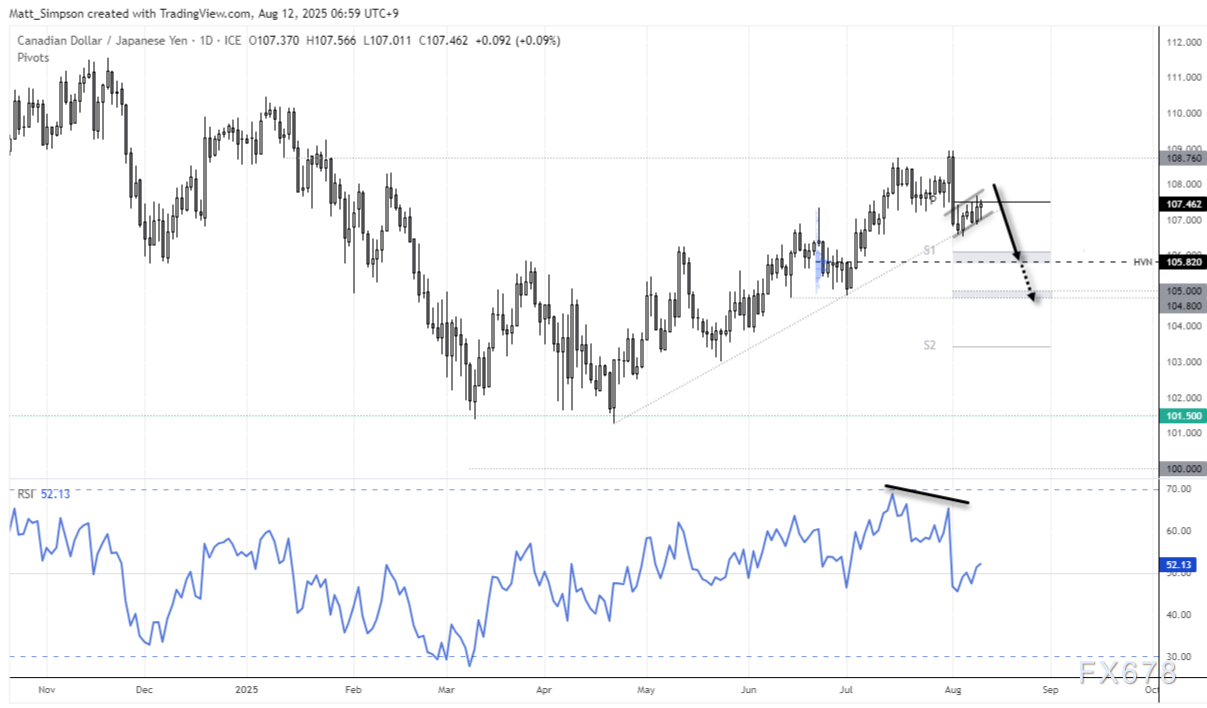 在本周关键风险事件之前,日元交叉盘表现出喜忧参半的势头。在美国CPI数据公布前,周二(8月12日)美元兑日元在美元普遍走强的支撑下,将涨幅扩大至149.00。相比之下,尽管最近日元走弱,加元兑日元和瑞郎兑日元仍闪烁着看跌的延续信号,暗示日元转强可能加速。这三种货币的技术分析都指向可能决定短期趋势的关键价位。 ![]() 合理推测一下,澳洲联储稍后(12:30)或许将降息25个基点。若未按市场共识采取行动,澳元很可能全线反弹。反之,若澳洲联储降息但在更新预测中未就进一步宽松提供实质性前瞻指引,下行空间可能受限。个人观点,基准推测降息25个基点,同时为12月前再次降息保留可能性 焦点现已转向美国CPI数据,市场预期核心通胀同比升至3.0%、环比涨0.3%。若数据伴随薪资增长加速,美元可能走强——若CPI同比达3.1%、环比0.4%或更高,升值动能将更显著。该结果将支撑鲍威尔政策立场,并削弱对9月及12月降息的预期。但由于高通胀已部分被定价,交易者亦需防范数据不及预期可能引发美元更剧烈下跌。 美元兑日元技术分析:美日货币走势展望 目前美元兑日元连续两日上涨,价格已突破200日指数移动平均线(EMA)。若美国通胀数据超预期火热,可能推动美元兑日元短期内进一步上行,甚至挑战149.00附近的阻力位。 若价格未能有效突破149.00关口上方阻力区,市场焦点将转向潜在次高点的形成(即头肩顶形态的"右肩")。尽管短期动能可能仍然利好美元,但整体趋势表明,一旦这波修正行情结束,随着美元重启对日元的下跌趋势,美元兑日元可能转向下行。 ![]() 加元兑日元技术分析:加日货币走势展望 本周,加元兑日元从支撑位展开疲弱反弹,加元空头或正迎来机会窗口。尽管日元整体疲软,加元却是过去一周兑日元表现最弱的货币之一。若日元迎来更广泛走强,加元兑日元的跌幅可能远超其他主要货币对。 加元兑日元仍受困于趋势线支撑附近,周一的行情未能破坏上周五的吞没看空信号。月度枢轴点持续压制上行空间,尽管东京开盘后可能出现短暂冲高,但周期高点下方109.00关口附近的长阴看跌吞没蜡烛形态,始终强化着看空前景。 对加元空头而言,下探106.00或是可行目标,该价位与前期修正行情的高成交量节点(HVN)重合。若跌破该水平,则105.00关口将进入视野——此处恰位于104.80摆动低点上方,将进一步确认加元兑日元的弱势格局。 ![]() 瑞郎兑日元技术分析:瑞郎日元走势展望 瑞郎兑日元持续走强,从2月低点到7月高点累计上涨超12%。除周线图上短暂的三角旗形整理外,直至当前,回调行情渺茫。 186.00关口的月线级别双顶形态形成,暗示动能转变。若回撤2-7月涨势的38.2%斐波那契位,汇价可能下探179.00下方,该区域与6月价值区间高点(VAH)形成技术共振。 ![]() 瑞郎兑日元日线图发出深度回调风险信号 从日线图来看,瑞郎兑日元未能站稳186.00关口上方,形成次高点并伴随长阴看跌吞没形态。当前汇价在月度S1枢轴点182.21上方震荡,但显现的下降旗形形态暗示下行趋势可能延续。 该下降旗形的理论下跌目标指向179.00略上方,使其成为空头关键目标位。不过,180.22(2024年高点)可能暂时抑制下行动能,成为进一步下跌前的支撑枢轴。 北京时间12:20,美元兑日元现报148.43/44。 ![]() |