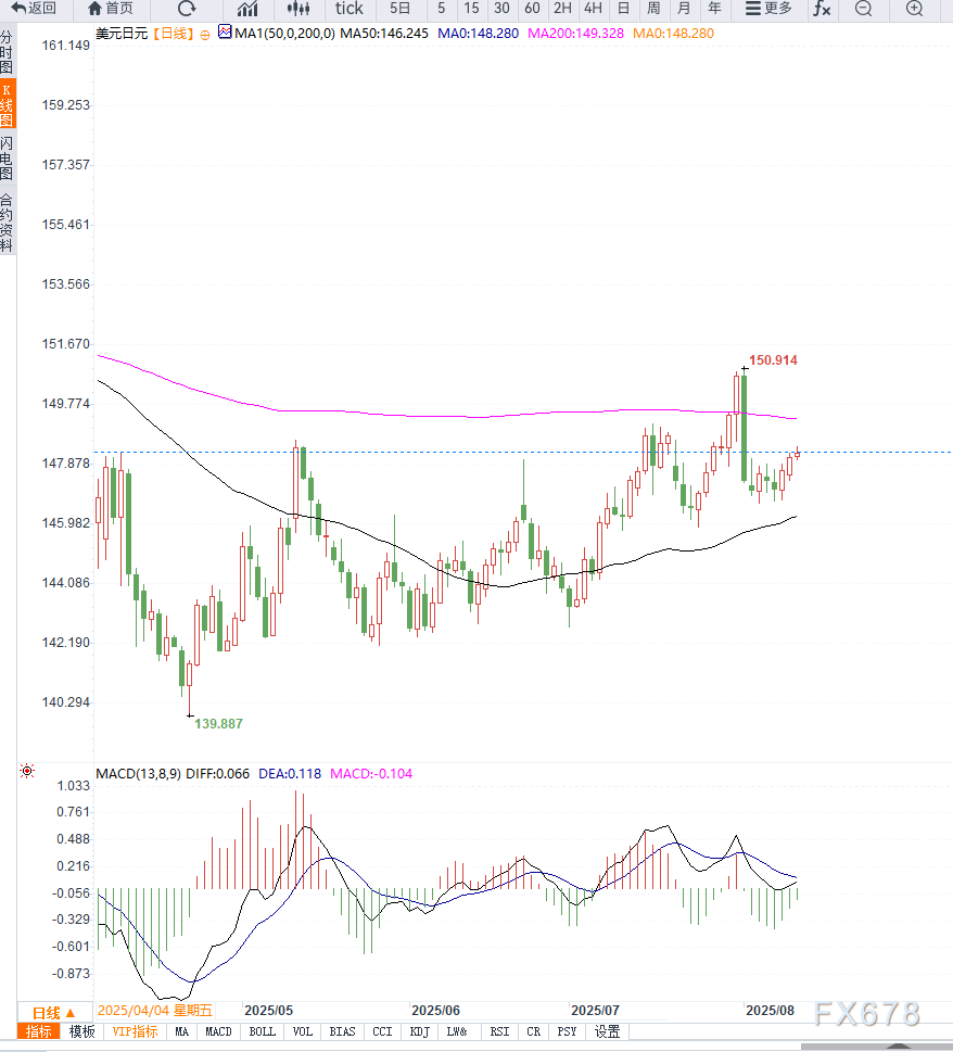 日元周二继续走弱,亚洲时段美元兑日元上扬至148.50附近,创一周半新高。市场认为,日本央行可能因国内政治不确定性及更高关税潜在冲击而推迟进一步政策正常化,这令日元承压。同时,全球股市风险偏好回升,削弱了日元的避险吸引力。 ![]() 技术面来看,美元兑日元已有效突破147.80的关键阻力区(7月升势38.2%斐波那契回撤位),并站上148.00整数关口,构成短线看涨信号。日线指标偏多,若汇价突破148.50区域,将强化上行趋势,目标瞄准149.00(23.6%回撤位)。 下方支撑位于147.75,进一步支撑在147.00及146.80(4小时200均线与50%回撤位重合),一旦失守或触发技术性抛售,将可能下探146.00甚至145.00关口。 ![]() 当前美元兑日元的多空博弈主要由日本央行加息节奏与美联储降息预期的落差驱动。若美国通胀数据低于预期,将强化美联储宽松预期,对美元形成压力; 反之,若数据偏强,则可能推动汇价进一步冲击149关口。短期来看,148.00的支撑与148.50的突破将是多空力量转换的关键。 ![]() |