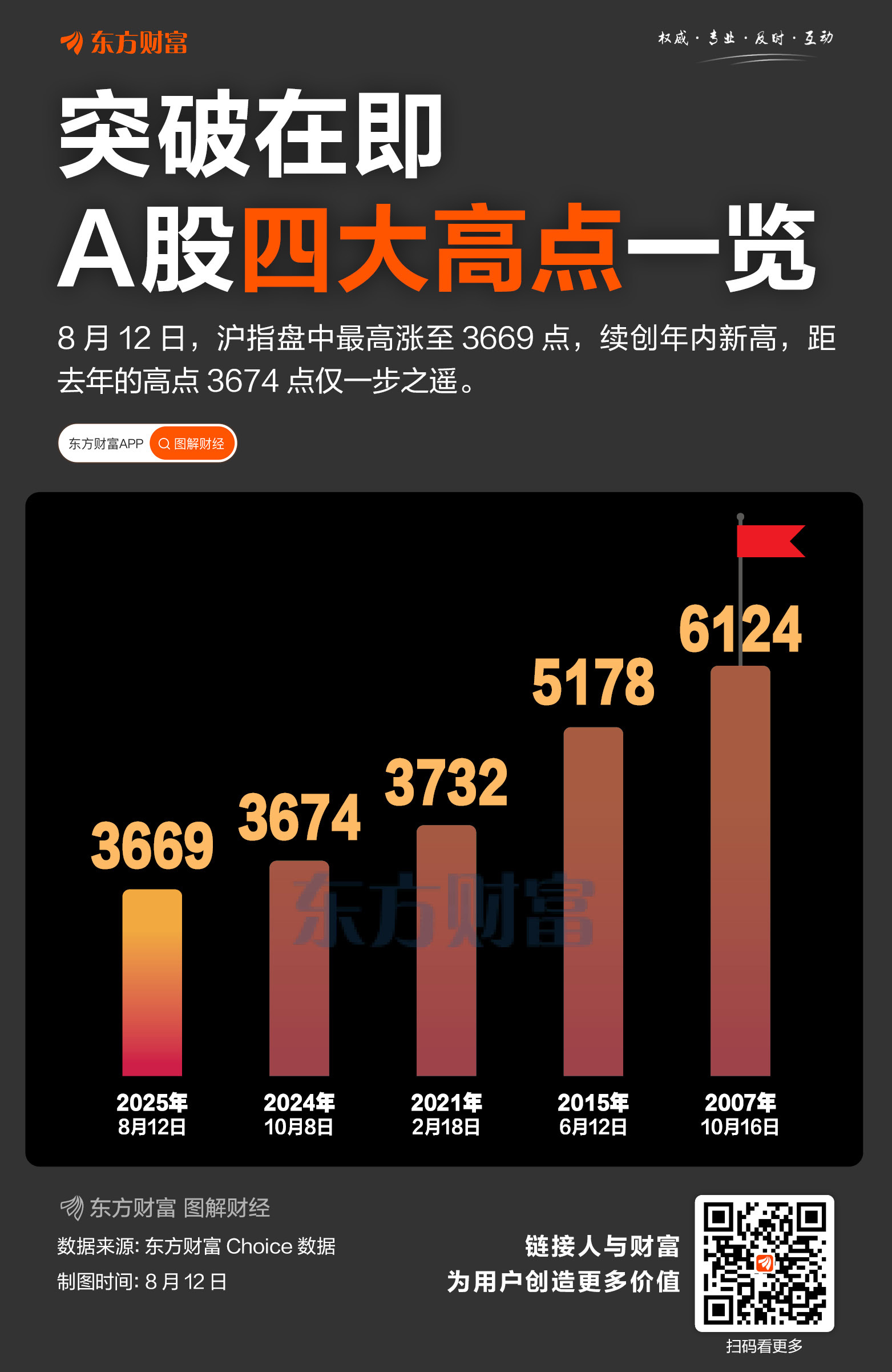 08月12日,A股震荡走高,三大指数均续创年内新高。其中,沪指录得七连阳,盘中最高涨至3669.04点,距离去年10月8日创下的高点3674.40点仅一步之遥。两市全天成交1.88万亿元,已是连续第19个交易日超过1.5万亿元。 ...