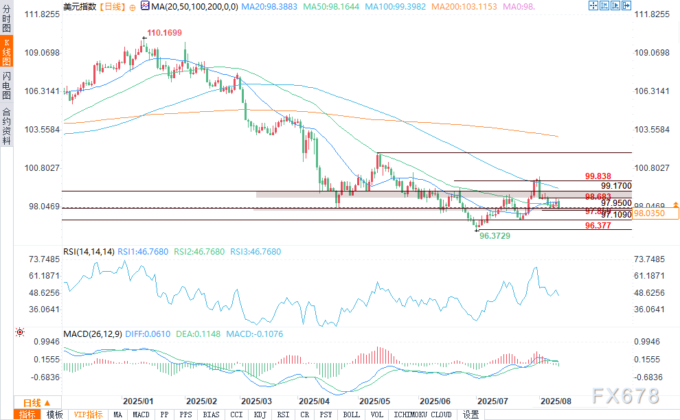 周二(8月12日),美国7月消费者物价指数数据公布后,市场对美联储下次政策会议降息的预期升温,美元随之走软。7月CPI上涨0.2%,符合预期,6月CPI涨幅为0.3%。同比来看,CPI维持在2.7%,略低于2.8%的普遍预期。剔除食品和能源的核心CPI同比上涨3.1%,略高于3%的预期,环比较6月上涨0.3%。 ![]() 收益率差收窄,欧元和日元缩小对美元涨幅 欧元扭转早盘跌势,上涨0.06%,报1.16235美元;美元对日元的涨幅收窄,仅上涨0.17%,报148.390日元。沙莫塔认为,短端收益率差收窄是美元抛售压力的关键驱动因素,如果后续数据证实美国经济活动放缓,这种压力可能会持续。 英镑上涨0.4%,报1.34805美元。此前公布的英国劳动力市场数据显示,就业市场持续疲软,但薪资增长保持韧性,这种情况可能会让英国央行在降息问题上保持谨慎。澳大利亚央行如预期降息25个基点后,澳元下跌0.3%,报0.64945美元。澳新银行预测,11月可能会再次降息。 国债市场发出复杂的利率预期信号 美国CPI数据公布后,美国国债收益率出现分化。2年期国债收益率下跌2个基点,至3.906%,反映出市场对短期降息的押注;10年期国债收益率上涨2个基点,至4.297%;30年期国债收益率上涨近5个基点,至4.887%。分析师表示,此次数据符合预期,且未引发通胀担忧,这支持美联储在不影响通胀控制的前提下放松政策。 关税和全球贸易仍是风险变量 美国将对中国进口商品维持高关税再延长90天的消息,在外汇市场上基本未引起波澜。双方同意的这一延期举措虽推迟了局势升级,但核心分歧仍未解决。 前圣路易斯联邦储备银行行长詹姆斯·布拉德加入了市场讨论,他表示如果获得提名,愿意担任美联储主席,并强调美元稳定和机构独立性的重要性。 市场展望:若美联储释放激进宽松信号,美元指数易受冲击 ![]() 鉴于通胀得到控制且劳动力市场出现疲软迹象,美联储在9月有降息空间。收益率差收窄以及主要外币保持韧性表明,如果鲍威尔在杰克逊霍尔年会上释放出准备进一步大幅降息的信号,美元指数可能会面临持续抛售压力,向关键支撑位下行。 从技术层面来看,美元指数跌破98.200的50日均线后,处于弱势地位,该指标已成为新的阻力位。今日的抛售使得市场有可能突破97.859的斐波那契支撑位,该水平可能成为下行加速的触发点,下一个主要目标是7月24日创下的97.109低点。 ![]() |