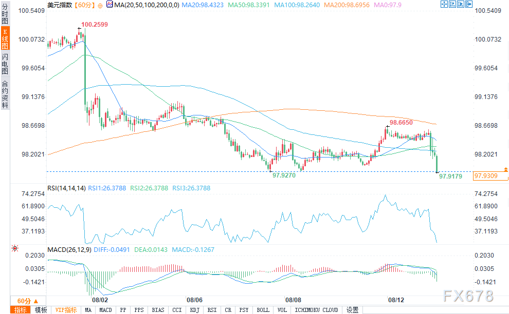 今日美国劳工统计局发布的7月CPI报告显示通胀温和 推高美联储降息预期 美元指数盘中下跌0 50 至97 85 7月CPI环比上涨0 2 同比2 7 低于市场预期的2 8 核心CPI环比上涨0 3 同比3 1 略高于预期的3 ...