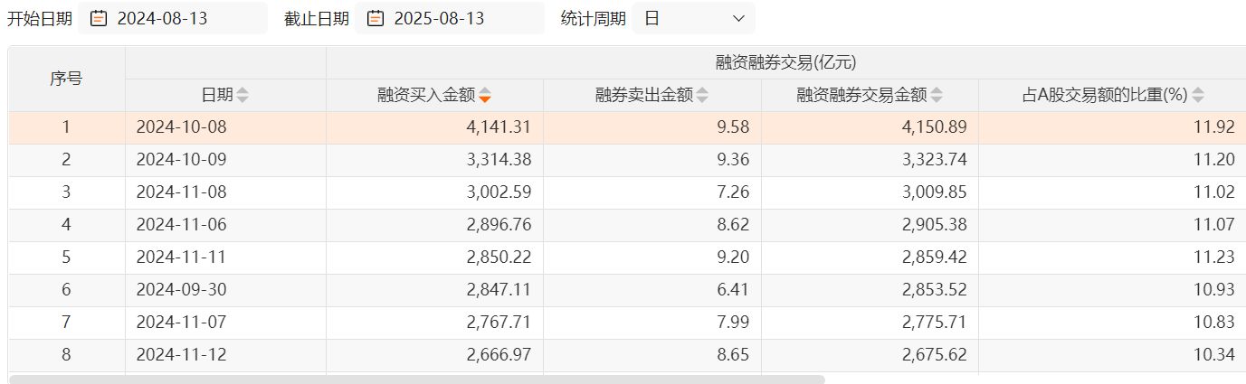 每经记者|王砚丹 每经编辑|叶峰 8月以来,投资者参与融资融券交易的热情持续高涨。继8月5日A股两融余额时隔十年后重返2万亿大关后,有关两融的年内数据继续被刷新,成为推动沪指突破2024年10月3674.40点高点的重要力量。 东方财富Choice金融终端数据显示,截至8月12日,A股两融余额已达到20345.33亿元,其中融资余额20203.65亿元,融券余额141.68亿元。而其实在8月11日收盘,单独的A股融资余额也回到2万亿上方,这也是十年来首次。 去年沪指触及3674点,融资者明显更亢奋 从投资者参与情况来看,两融余额突破重要关口后,投资者对于融资融券业务的参与热情不仅未减,反而呈现显著提升态势。 8月以来,A股单日融资买入金额均维持在1500亿元以上,占A股交易额的比重约为10%。尤其是8月11日、12日,沪指挑战3674点关口时,投资者选择了相信向上突破的力量,连续两个交易日融资买入金额超过1900亿元。 8月以来A股融资买入交易情况 但这一融资买入水平远远低于去年10月A股“924”新政后亢奋初期。 2024年10月8日,沪指创下“924”新政后高点3674.40点,当天融资买入金额高达4141.31亿元,占A股交易额比重为11.92%,较本次突破3674.40点高出一倍。10月9日开始市场初露调整迹象,但当天融资买入金额仍然高达3314.38亿元。 由此可见,沪指前后两次触及3674点,杠杆资金态度有显著差异。2024年10月那次,投资者压抑许久的投资激情被点燃,加杠杆行为更为激进。而这次通过十个月的整固,市场逻辑发生了较大变化,杠杆资金入场节奏明显更为小步慢跑,而非单纯凭着情绪亢奋追涨杀跌。 另外,数据显示,8月12日参与融资融券交易的投资者数量为47.73万名,与上一交易日相比,增加2.81万名,环比上升6.25%。截至8月12日,融资融券个人投资者数量为755.36万名,有融资融券负债的投资者数量为172.41万名。 融资者长期聚焦核心资产,也偏爱成长风格 而从融资余额的分布来看,截至8月12日,共有6只个股融资余额超过100亿元。东方财富以233.24亿元融资余额居首;中国平安、贵州茅台紧随其后,融资余额分别为221.70 亿元、168.69亿元。比亚迪、中信证券、长江电力融资余额也均超过100亿元。此外,跻身市场融资余额排行榜前十名的还有江淮汽车、赛力斯、宁德时代、中芯国际。这些公司既有最为受益牛市活跃的券商、保险板块,又包括红利股、新能源板块,反映杠杆资金长期聚焦行业核心资产,布局更趋稳健。 而单看8月12日情况略有不同。当天科技板块成为融资者最为青睐的领域。融资买入第一名为寒武纪,融资买入金额高达22.31亿元,其次是中际旭创,当天被融资买入18.12亿元,新易盛以融资买入17.47亿元排名第三。 财达证券指出,8月市场震荡上行,市场成长风格表现突出,但在指数上涨过程中各行业板块表现有一定的分化,市场更多体现为结构性行情,算力产业链的CPO、PCB连创新高带动科技股的上行,建议继续关注科技成长主线;特别是AI硬件产业链的GPU、光刻机、光刻胶等相关品种。 封面图片来源:每日经济新闻 |