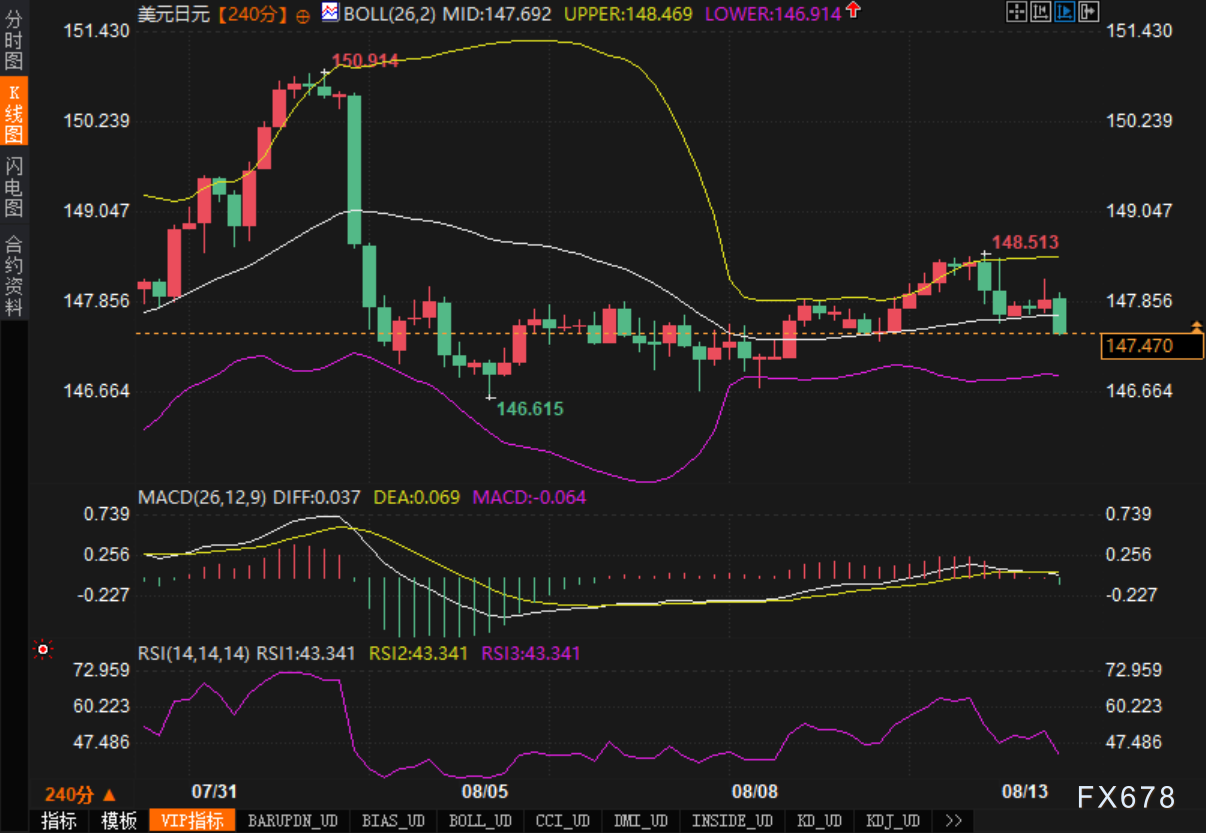 周三(8月13日),日元连续第二天上涨,虽然美元普遍走弱,但市场对日本央行(BoJ)加息时机的预期仍不明朗,导致日元缺乏持续上涨的动能。数据显示,日本批发通胀在7月放缓,已连续第四个月呈下降趋势,这一数据加剧了市场对日本经济前景的不确定性。此外,日本国内政治局势的动荡以及对美国提高关税对日本经济潜在负面影响的担忧,使得日本央行进一步政策正常化的前景可能延后。 ![]() 基本面 日本经济在近期面临多个不确定因素,特别是在其国内政治局势的波动和美国可能加征关税的情况下,经济前景依然充满挑战。7月日本的企业商品价格指数(CGPI)同比上涨2.6%,低于前一个月的2.9%,显示出国内通胀压力的减弱。然而,食品和农业商品价格的上涨仍然表明,通胀压力可能进一步蔓延。这一现象可能促使市场继续预期日本央行将在年内加息,尽管该预期受到日本经济困境的制约。 美国7月的消费者物价指数(CPI)数据显示,CPI同比保持在2.7%的水平,核心CPI同比增长至3.1%。这一数据支持了市场对近期关税压力主要是暂时性的看法,且与美国劳动力市场恶化和经济放缓的迹象相一致。这增强了市场对美联储在9月降息的预期,美元因此承压。 日本央行在7月的会议上修订了通胀预期,并重申如果经济增长和通胀符合预期,将进一步加息。然而,由于日本经济面临的压力,包括政治不稳定、美国可能加征的关税,以及日本实际工资的持续下降,市场对日本央行加息的预期相对谨慎。此种情况下,市场情绪偏向不确定,日元短期内可能继续震荡。 技术面: 目前美元/日元接近布林带下轨(146.914),这意味着价格可能面临下行支撑。如果价格突破布林带下轨,可能会进一步下探更低的价格水平。布林带收窄暗示市场波动性减弱,价格可能会进入整理阶段,因此需要关注价格能否保持在当前区间内。 ![]() RSI当前为43.341,接近超卖区域,暗示市场可能短期内出现反弹。然而,RSI尚未进入完全超卖区(如30以下),因此下行风险依然存在。 市场情绪观察 在全球风险偏好情绪回升的背景下,日元的避险属性受到了市场的削弱。美联储预计在9月降息,而日本央行尚未明确加息时间,这使得市场对日元的需求有所减少。尽管如此,美元疲软依然给日元提供了一定的支撑。短期内,全球经济和政治的不确定性可能会导致市场情绪的波动,影响日元汇率的走势。 后市展望 多头展望: 如果美元/日元能够维持在147.400的支撑位之上,并且RSI接近超卖区域,则市场可能会迎来技术性反弹。此时,汇价可能会回升至148.300附近。然而,需要注意的是,当前市场缺乏强烈的多头动力,因此反弹可能只是短期的。 空头展望: 若价格突破布林带下轨,且MACD指标显示出持续的空头信号,市场可能进一步下探至146.615的支撑位。如果该支撑位被突破,则汇价可能会面临更大幅度的下行空间。鉴于全球经济的不确定性和日本央行政策的模糊性,空头情绪可能在短期内占据主导地位。
