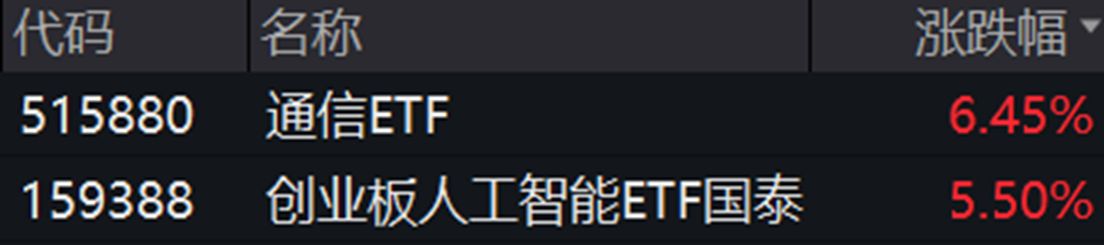 每经编辑|赵云 今日通信ETF(515880)开盘后持续上涨,全天维持强势,截至收盘上涨6.45%。创业板人工智能ETF国泰(159388)走势接近,收涨5.50%。 资料来源:wind 今日大盘表现强势。沪指突破去年1 ...