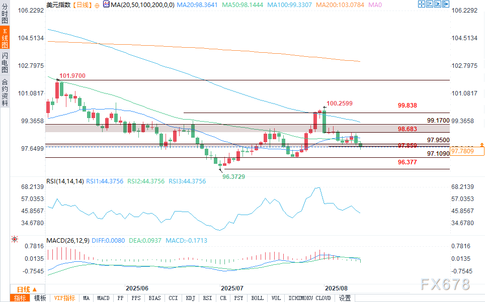 周三(8月13日)美盘时段,受疲软的通胀数据以及市场对美联储下月降息预期升温的影响,美元指数(DXY)连续第二个交易日延续跌势。美元指数盘中报97.81,创下7月28日以来的最低收盘价,继周二下跌0.5%后,周三又下跌0.2%。这一走势反映出,随着交易员计入激进的政策宽松预期,看跌情绪有所加剧。 ![]() 7月的CPI数据仅小幅上涨,符合预期。这一结果缓解了人们对近期加征关税正在推高消费者价格压力的担忧。伦敦证券交易所集团(LSEG)的数据显示,联邦基金期货目前暗示,美联储在下次会议上降息的概率为98%,市场甚至在考虑降息50个基点的可能性。 美联储还面临着越来越大的政治压力。财政部长斯科特·贝森特公开主张“一系列降息”,而特朗普总统则加剧了对美联储主席鲍威尔的批评。政府甚至还提出了就美联储总部翻新一事采取法律行动。这种政治干预可能会削弱央行的公信力,并可能进一步对美元造成压力。 美元动能消退,全球货币上涨 美元指数的走弱支撑了主要货币的上涨。欧元上涨0.3%,至1.1705美元,创下7月28日以来的最高水平;英镑上涨0.5%,至1.3572美元。尽管就业数据疲软,但英镑仍得益于英国央行的谨慎立场。 商品货币也受到买盘推动,澳元与纽元分别上涨0.26%和0.37%。澳大利亚储备银行如预期般降息,但为进一步宽松敞开了大门。 通胀前景缓解,国债收益率下跌 债券市场出现普遍的收益率下跌。10年期美国国债收益率跌至4.233%,2年期国债收益率下跌逾6个基点,至3.681%。通胀数据加之对降息预期的升温,导致整条收益率曲线的收益率走低。交易员们正为周四的生产者物价指数(PPI)报告以及周五的零售销售和消费者信心数据做准备,以期从中获取有关美联储下一步行动的更多线索。 ![]() 从技术面来看,美元指数已跌破其50日移动平均线(98.10),目前正在测试近期支撑位97.945。若持续走低,下行风险将指向97.109以及7月低点96.377。阻力位在98.317和98.683,更强的上方阻力位于99.177和99.838附近。在200日移动平均线(104.086)下方,长期动能仍处于看跌状态。 市场展望:美元指数面临进一步下行风险 随着美联储的鸽派预期被充分计入,且政治噪音不断加剧,美元指数仍承受压力。除非周五的零售销售或消费者信心数据意外向好,否则美元最可能的走势仍是下行。技术面破位以及收益率曲线压缩进一步支撑了美元近期的看跌前景。 北京时间01:01,美元指数报97.7839/040,跌幅0.27%。 ![]() |