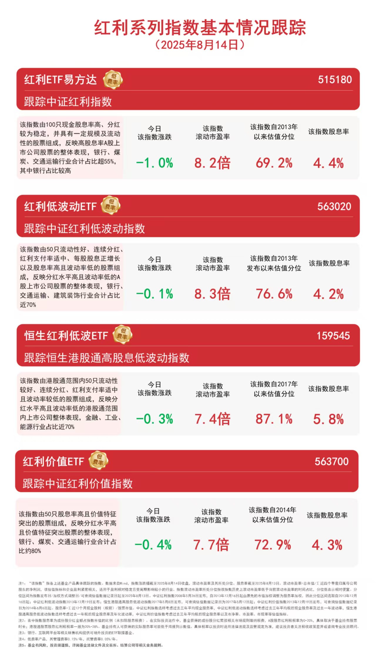 截至收盘,中证红利低波动指数下跌0.1%,恒生港股通高股息低波动指数下跌0.3%,中证红利价值指数下跌0.4%,中证红利指数下跌1.0%。Wind数据显示,恒生红利低波ETF(159545)今日获1260万份净申购,截至昨日,该产品 ...