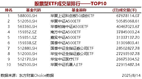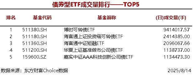 每经AI快讯,据东方财富Choice数据统计,今日共6只股票型ETF成交量超3000万手,华夏上证科创板50成份ETF成交6767.81万手,债券型ETF成交量最大的是博时可转债ETF(941.4万手),商品型ETF成交量最大的是华安黄金易ET ...