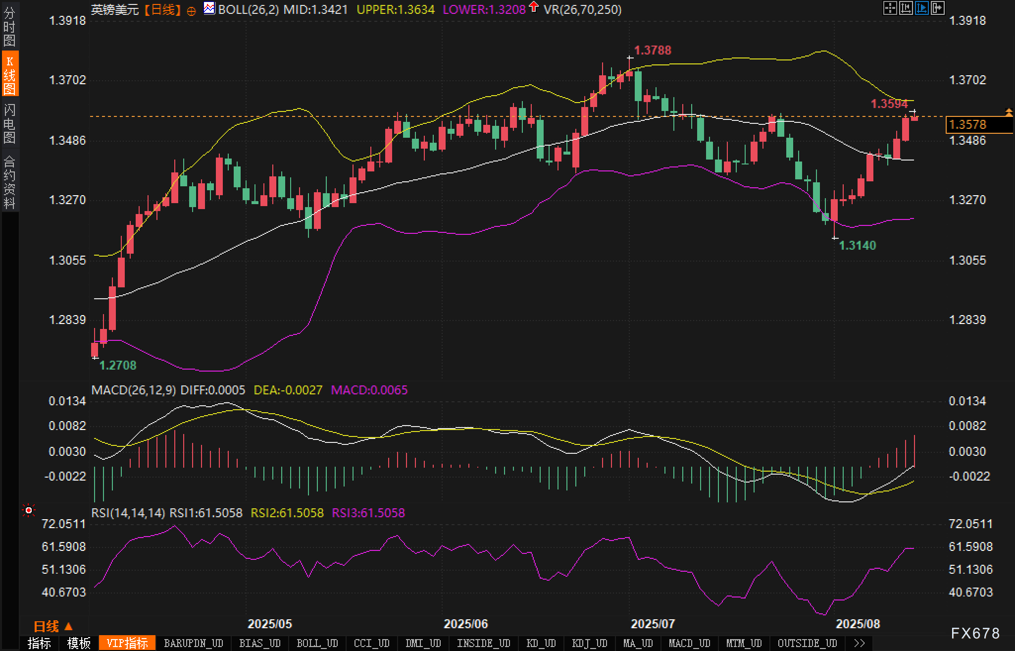 周四(8月14日),英镑在发布强劲的英国国内生产总值(GDP)及工业生产数据后,吸引了市场的买盘,兑美元汇价(GBP/USD)上涨。根据英国国家统计局(ONS)公布的数据,英国经济在2025年第二季度增长了0.3%,超出市场预期的0.1%。第一季度的GDP增长为0.7%。6月经济增长达到0.4%,远超预期的0.1%,在5月出现萎缩后,显示出英国经济的韧性。此外,制造业和工业生产月度增幅分别为0.5%和0.7%,也是强于预期的表现。 ![]() 与此同时,由于市场普遍预期美联储将在9月的货币政策会议上降息,美元出现了回调。美元指数(DXY)一度下滑至两周低点97.60附近,进一步支撑了英镑的上涨。交易员几乎已完全定价了美联储将在9月降息25个基点的预期,根据CME FedWatch工具,市场对美联储降息的预期愈加增强,且美联储降息的幅度和时机或将对美元产生较大压力。 技术面 从技术面来看,英镑/美元在近期的强劲反弹后,价格已经接近1.3600水平,这一价格区间也是布林带的上轨区域。图表显示,在经历了一段时间的整理和下行后,汇价在1.3140附近找到支撑,反弹至当前的阻力区附近。 ![]() MACD指标显示出一段明显的上涨趋势,当前MACD线在信号线之上,表明短期内市场的多头力量依然强劲。 市场情绪观察 当前市场情绪明显倾向于英镑的多头,部分原因源于英国经济数据的强劲表现,而更为重要的是市场对美联储降息的预期。这种预期加剧了美元的卖压,增强了英镑的上涨动能。随着美联储降息预期的升温,市场对美元的避险需求减弱,这使得英镑在市场上更具吸引力。 然而,英镑的多头情绪虽然得到基本面数据的支撑,但技术面上也存在一定的压力。布林带的上轨形成了一个短期内的阻力区域,这使得交易员对英镑的持续上涨持谨慎态度。若汇价未能有效突破上轨区域,则可能会出现回调或整理,导致短期内的多头情绪受限。 后市展望 多头展望: 从后市展望来看,英镑若能够突破当前的技术阻力位1.3600,并稳步向上突破1.3788的高点,则有望进一步走高,挑战更高的目标位1.4000附近。考虑到英国经济的强劲表现以及市场对美联储降息的预期,英镑有可能继续走强,尤其是在美元承压的情况下,英镑将受益于更为乐观的市场情绪。 空头展望: 然而,若英镑未能有效突破当前的阻力位,则有可能在1.3600附近遇到较强的卖盘压力,导致汇价回落至1.3270的支撑区域。若价格进一步跌破此支撑,可能会打开下行空间,测试1.3140的次级支撑。技术面和市场情绪的双重影响意味着,英镑的短期走势仍然充满不确定性。 ![]() |