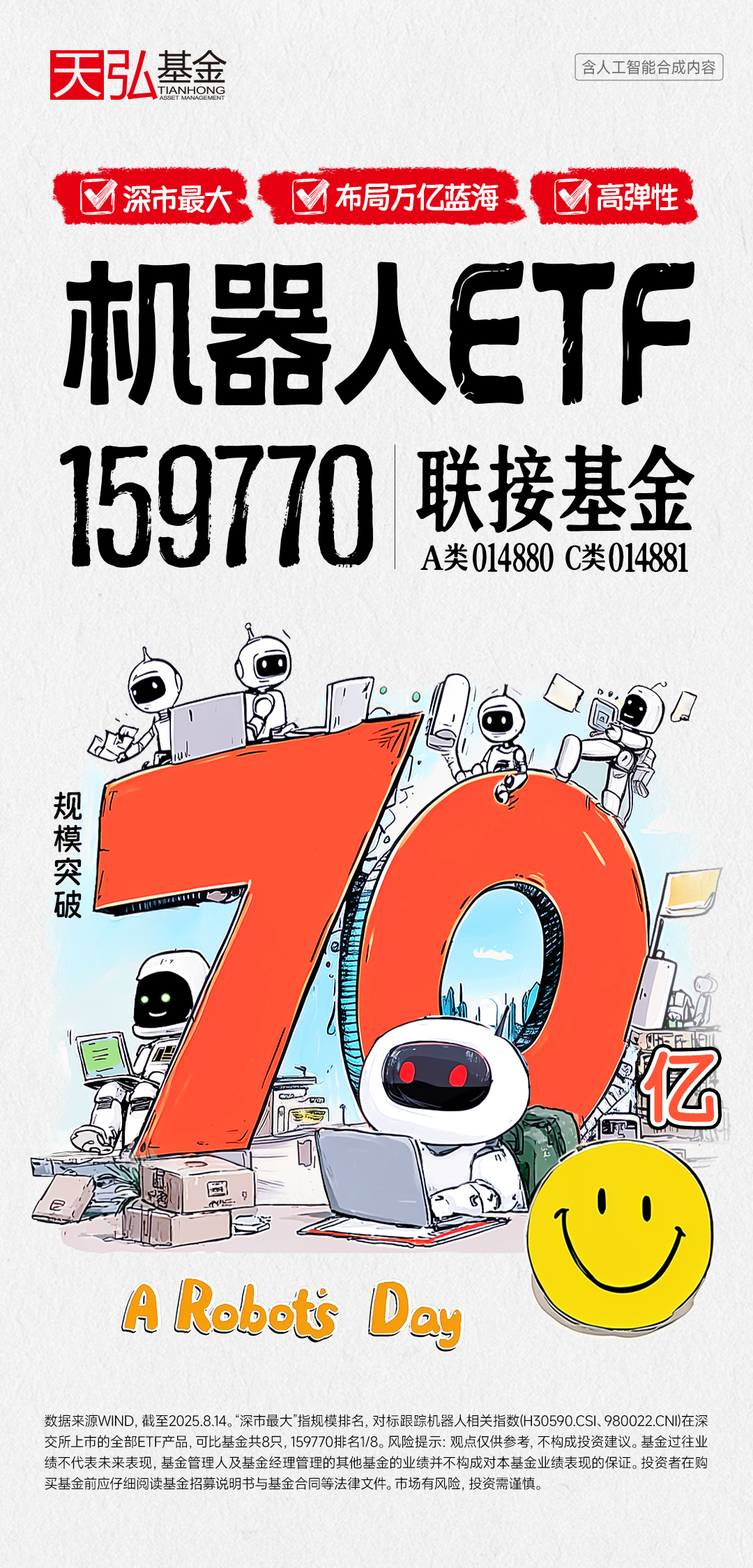 每经编辑|叶峰 A股三大指数今日低开高走,创业板指领涨。机器人板块个股早盘表现亮眼,均普智能大涨超13%,博众精工涨超9%。 受重仓股上涨影响,深市规模最大的机器人ETF(159770)开盘直线拉升,盘中涨约1%。 昨日,全球首个世界人形机器人运动会火热开幕,来自全球16个国家的280支队伍参赛,国内队伍包括天工、宇树科技、加速进化、松岩动力、傅利叶等,基本覆盖了头部人形机器人整机企业。百米“飞人”大战、足球、武术、自由搏击等项目成为关注焦点。 作为国家战略重点,人形机器人近年来发展进程加速,有望成为新质生产力的“新引擎”。有分析认为,中国人形机器人市场规模到2030年将达到近380亿元,2024-2030年复合增长率将超过61%。 随着人形机器人不断取得突破性进展,深市最大的机器人ETF(159770)备受资金关注和青睐,该ETF近3日连续获资金净流入,累计超3.8亿,最新规模已突破70亿元,再创历史新高。 有券商表示,板块前期回调较多+国内外机器人产业链涌现积极变化,人形机器人板块情绪回暖,2025世界人形机器人运动会等多项重磅活动均有望为板块带来持续催化。 |