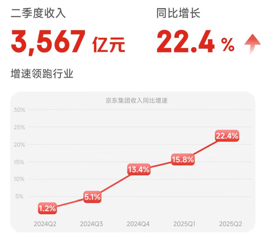 每经记者|王郁彪 每经实习编辑|余婷婷 “我们做外卖业务追求的不是一两个月的成绩,而是希望长期做下去,5年、10年、20年。”财报季的到来,让外卖战场打得火热的二季度成绩水落石出。无论外界热议京东做外卖究竟划不划算,京东集团CEO(首席执行官)许冉给出了这样的定调。 8月14日,京东集团(09618.HK)公布二季度业绩。财报显示,二季度,京东集团收入为3567亿元,同比增长22.4%,刷新近三年来同比增速纪录。京东零售收入同比增长20.6%,经营利润率达4.5%,创下历史所有大促季度最高纪录。 外卖业务给京东带来了什么?新业务收入同比大幅增长199%。与此同时,二季度,得益于核心零售业务和外卖等新业务的发展势头,京东集团的季度活跃用户数和购物频次同比增长均超过40%。京东带电等核心品类和日用百货两大商品收入类别增长也均提速。 当然,有得亦有失。京东二季度非美国通用会计准则下归母净利润为74亿元,同比下降48.87%,略低于券商预期。