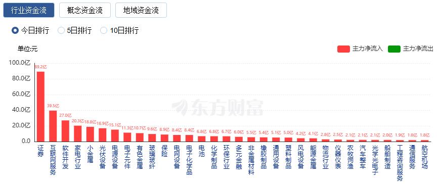 行业资金流向:89.17亿净流入证券 行业资金方面,截至收盘,证券、互联网服务、软件开发等净流入排名靠前,其中证券净流入89.17亿。 ![]() 净流出方面,通信设备、银行、计算机设备等净流出排名靠前,其中通信设备净流出40.91亿元。 ![]() 今日要闻 飙涨!牛市旗手大消息!北向资金连续多天现身“爆炒” 8月13日—14日共有3家中小券商率先披露2025年上半年业绩,成为今年首批公布“成绩单”的证券公司。数据显示,中小券商净利润实现高增长,其中江海证券大增13倍。自营业务为中小券商业绩增长的主要驱动力。 世界人形机器人运动会来了!足球、搏击、舞蹈等多方面将展开比拼 全球首个以人形机器人为参赛主体的综合性体育盛会“2025世界人形机器人运动会”来了。来自16个国家的280支参赛队伍,围绕竞技赛、表演赛、场景赛、外围赛四大类别共26个赛项展开487场比拼,展现人形机器人在智能决策、运动协作等领域的能力。 光伏组件再现缺货涨价 在年初经历了国家发展改革委、国家能源局印发《关于深化新能源上网电价市场化改革促进新能源高质量发展的通知》(下称“136号文”)引发光伏“抢装潮”后,8月的光伏组件市场再度出现缺货与涨价现象。综合记者咨询的多家头部光伏组件经销商,目前一线组件企业组件对外报价已达0.7元/W,且出现缺货现象,缺货型号主要集中在710W大版型组件。 国家有关部门:研究制定海洋产业发展政策措施 积极探索鼓励央企和社会资本参与发展海洋经济 记者从国家有关部门获悉,下一步将推进全国海洋经济发展示范区建设,研究制定支持海洋强省(区、市)建设相关政策文件。加大力度引导金融支持海洋经济发展,持续推动海洋产业投融资指导目录更新,积极探索鼓励央企和社会资本参与发展海洋经济的实现路径。 统计局:7月规模以上工业增加值增长5.7% 社会消费品零售总额增长3.7% 7月份,全国规模以上工业增加值同比增长5.7%,环比增长0.38%。7月份,社会消费品零售总额38780亿元,同比增长3.7%;环比下降0.14%。按经营单位所在地分,城镇消费品零售额33620亿元,同比增长3.6%;乡村消费品零售额5160亿元,增长3.9%。 统计局:7月份各线城市商品住宅销售价格环比下降 同比降幅整体有所收窄 2025年7月份,70个大中城市中,各线城市商品住宅销售价格环比下降,同比降幅整体有所收窄。7月份,一线城市新建商品住宅销售价格环比下降0.2%,降幅比上月收窄0.1个百分点。其中,北京持平,上海上涨0.3%,广州和深圳分别下降0.3%和0.6%。 机构策略 中信证券:数据中心电源前景广阔,SOFC打开新增长极 中信证券指出,SOFC(固态氧化物燃料电池)具有高发电效率、减碳潜力突出、可快速部署等优势,高度适配数据中心用电需求,在海外数据中心建设加速的大背景下,中信证券测算未来三年SOFC在数据中心领域的市场规模有望达到70亿美元。建议关注SOFC零部件生产企业以及提前卡位布局SOFC技术研发的上市公司。 中信建投:固态电池产业化节奏加快,整个产业链上游设备环节将最先受益 中信建投指出,固态电池产业化节奏加快,随着电池厂和整车企业中试线逐步跑通,产业链各环节降本持续推进,有望带动下游市场需求爆发式增长,整个固态电池产业链上游设备环节必将最先受益。从设备投资角度来看,全固态电池生产工艺与传统液态锂电池生产工艺的核心差异是驱动设备价值量重构的关键,这主要体现在整个工艺流程的前段和中段。全固态电池从电极制备和电解质制备都更适配干法技术,因此前段环节增加了干法混合、干法涂布等工序,价值量占比有较大提高;中段固态电池采用“叠片+极片胶框印刷+等静压”技术路线替代传统卷绕工艺,并删减了注液工序,价值量占比也有小幅提升;后段因化成环节高压化改造、设备对工艺环境要求提升,单机价值量也有显著提高。 华泰证券:当前或为布局银发市场的机遇期 华泰证券研报认为,银发消费市场正不断扩容/升级,日常消费、医养看护、养生保健、精神情感构成四大主力板块,日常消费比重最高,精神消费占比快速提升。未来10年银发群体将成为拉动国内消费增长的生力军,当前或为布局银发市场的机遇期。通过复盘日本银发产业和消费公司股价表现,发现日本银发市场在康养保健、旅游文娱、时尚美护、陪伴经济、看护养老等细分领域都有突出表现,中国市场大有可为。 |