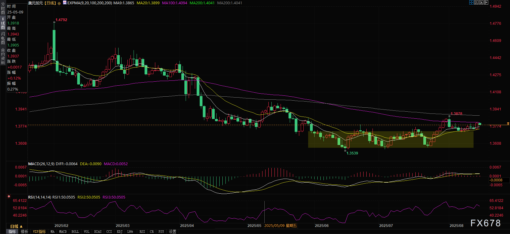 美元兑加元已从7月关键支撑位1.3600-1.3620区间反弹,技术动能再度转强。虽然目前汇价已回落至支撑区域,但在更大趋势重启前,汇价仍有望进一步上探1.39关口,甚至1.40。期货市场交易员正集体做空加元,这为美元兑加元短期看涨前景提供了额外支撑。 ![]() 2月至6月期间,加元兑美元持续大幅贬值,累计下跌8.5%——这一跌势在特朗普总统宣布暂停对加拿大、墨西哥和中国加征关税后有所缓和。汇价在1.36关口附近获得支撑,该水平同时与数月来的高成交量节点(HVN)及200周指数移动平均线重合。 尽管当前反弹仍属技术性修正(暗示美元兑加元最终可能重回1.36下方),但在趋势反转前,多头仍有进一步上攻空间。 汇价能否测试1.40心理关口(接近2022年高点1.3977),将取决于美联储对特朗普政府要求加大降息力度的抵抗程度。加拿大央行政策预期同样关键,下周公布的加拿大通胀数据将成为重要风向标。 美元兑加元技术分析:日线图 从日线图来看,空头曾三度尝试下破1.36关口下方HVN,但均以失败告终。每次尝试未果后都引发强势反弹,其中第三次反弹更是推动汇价触及十周高点。 目前汇价已回落至强劲支撑区域,该区域汇聚了50%斐波那契回撤位、50日均线及月度枢轴点。值得注意的是,周四(8月14日)K线形成看涨吞没形态,并以月度枢轴点为支点构筑了更高的低点。 只要汇价坚守周四低点1.3745上方就维持看涨立场。短期上行目标可关注200日均线附近的1.3885高点。若突破1.39关口,则月度R1枢轴点、2022年高点及1.40心理关口将成为下一阶段目标。 ![]() 北京时间17:57,美元兑加元交投于1.3794/95。 ![]() |