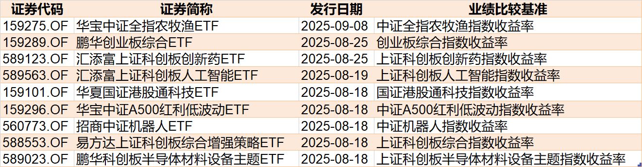 目前有6只ETF披露下周发行,跟踪标的有科创板半导体材料设备、中证机器人、A500红利低波动、港股通科技等。
