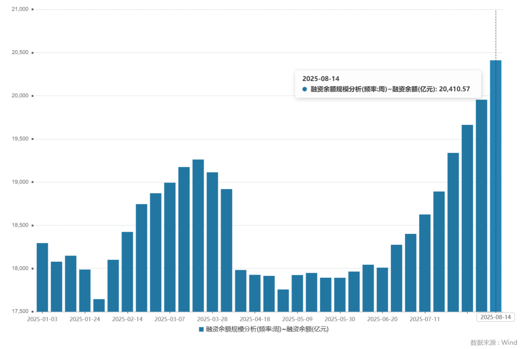 8月15日,A股市场呈现“低开高走、创业板领涨”的修复行情,全市场超4600只个股上涨。与此同时,A股市场融资余额节节攀升。Wind最新数据显示,全市场融资余额超2.04万亿元,创出近十年来的新高。 ![]() 业内人士普遍认为,与十年前相比,当前市场生态已发生深刻变革,向上的动能具有更加扎实的市场基础。流动性向好支撑下,预计市场维持在震荡偏高中枢运行。乐观情绪推动下,本轮行情尚未结束。 融资余额突破2万亿元 电子、医药生物等板块火热 近期,A股行情火爆。以沪指为例,8月14日、8月15日沪指盘中均突破3700点,较2024年9月的低点涨超1000点,#A股一年涨1000点#的词条也一度冲上微博热搜。 与此同时,A股市场融资余额节节攀升。Wind最新数据显示,沪市融资余额为10377.57亿元,深市融资余额为10004.04亿元,北交所融资余额为67.51亿元。合并计算后,全市场融资余额超过2.04万亿元,创出近十年来的新高。 进入8月以来,市场热度持续提升。8月5日,两融余额达到20002.59亿元,首次站上2万亿元大关。8月11日,融资余额达到20122亿元,突破2万亿元,热度保持至今。 两融余额能够直观反映杠杆资金规模,是衡量股市活跃度的关键指标之一。回顾来看,数据显示,上一次A股两融余额超过2万亿元,还要追溯到2015年7月1日,彼时A股两融余额达到20352.90亿元。此后,A股两融规模再未超过2万亿元的整数关口。 值得注意的是,自2024年7月暂停转融券并上调融券保证金以来,融券规模已降至百亿元水平,两融市场中融资和融券的规模差距加大。 从近期情况来看,Wind数据显示,融资余额自今年6月开始一路走高,从1.8万亿元附近逐渐攀升至如今的2万亿元水平。 ![]() 从行业来看,电子、非银金融、医药生物、电力设备等近期市场热门板块融资余额排名居前。 8月以来,参与两融业务的投资者数量也在持续增加。数据显示,8月14日,参与融资融券交易的投资者数量为54.77万名,创2024年11月以来新高。截至8月14日,融资融券个人投资者数量为756.03万名,机构投资者数量为49996家。 另外,记者关注到,近期多家券商纷纷通过各种渠道推广两融业务。需要注意的是,杠杆资金放大收益的同时,也放大了风险,投资者需根据自身情况及风险承受能力谨慎进行。 本轮行情尚未结束 向上动能具备扎实市场基础 对于本轮市场行情及两融余额的持续走高,业内人士如何看待? 华西证券非银分析师罗惠洲在研报中表示,A股市场两融余额重返2万亿元高位,背后动力主要在于政策预期改善与市场风险偏好回升的共振。监管层密集释放稳定资本市场的政策信号,增量改革与制度优化预期不断增强,提振了投资者对后市发展的信心。 罗惠洲认为,与十年前相比,此次两融余额重返2万亿元所处的市场生态已发生深刻变革,政策更加完善,资金更加稳健,投向更加精准,呈现出明显的价值投资倾向,向上的动能具有更加扎实的市场基础。 中国银河证券研究院首席策略分析师杨超认为,本轮行情以来,流动性与中长期政策预期驱动A股走势向上,市场风险偏好上升带动赚钱效应扩散。两融余额重返2万亿元大关,但两融余额占A股流通市值、两融交易额占A股成交额指标均处于历史中枢水平,远低于2015年峰值。短期来看,流动性向好支撑下,预计市场维持在震荡偏高中枢运行。 中金公司研究部国内策略首席分析师李求索指出,与2015年新增融资资金明显相对超配金融、地产不同,当前行业分布更分散、集中度更低。从过去1个月融资净买入的情况来看,配置更偏向医药、电子、计算机、高端制造、军工等偏成长板块,同时有色金属、非银板块等受益于产业趋势及业绩弹性,获融资净买入也较多。 李求索称,本轮两融余额持续提升的重要背景在于去年“9·24”以来稳市场政策的不断落地带来投资者风险偏好的修复。“9·24”至今一揽子稳增长、稳市场、稳预期政策举措相继出台,资本市场制度持续优化,叠加科技与地缘叙事转变,推动投资者情绪改善。A股成交额不断放量,新增开户数同比明显增长;同时,券商融资利率跟随无风险利率下行,两融资金成本降低助力规模增长。 市场层面,李求索认为,乐观情绪推动下本轮行情尚未结束。但短期来看,需关注外部事件性因素对风险偏好的可能影响。配置上,建议关注景气度高且业绩可验证的AI/算力、创新药、军工、有色等板块;业绩弹性较高,受益于居民资金入市的券商、保险等行业;红利板块仍具一定配置价值,低波动特征契合低风险偏好资金,且险资等配置型机构需求稳定。 (文章来源:中国基金报) |