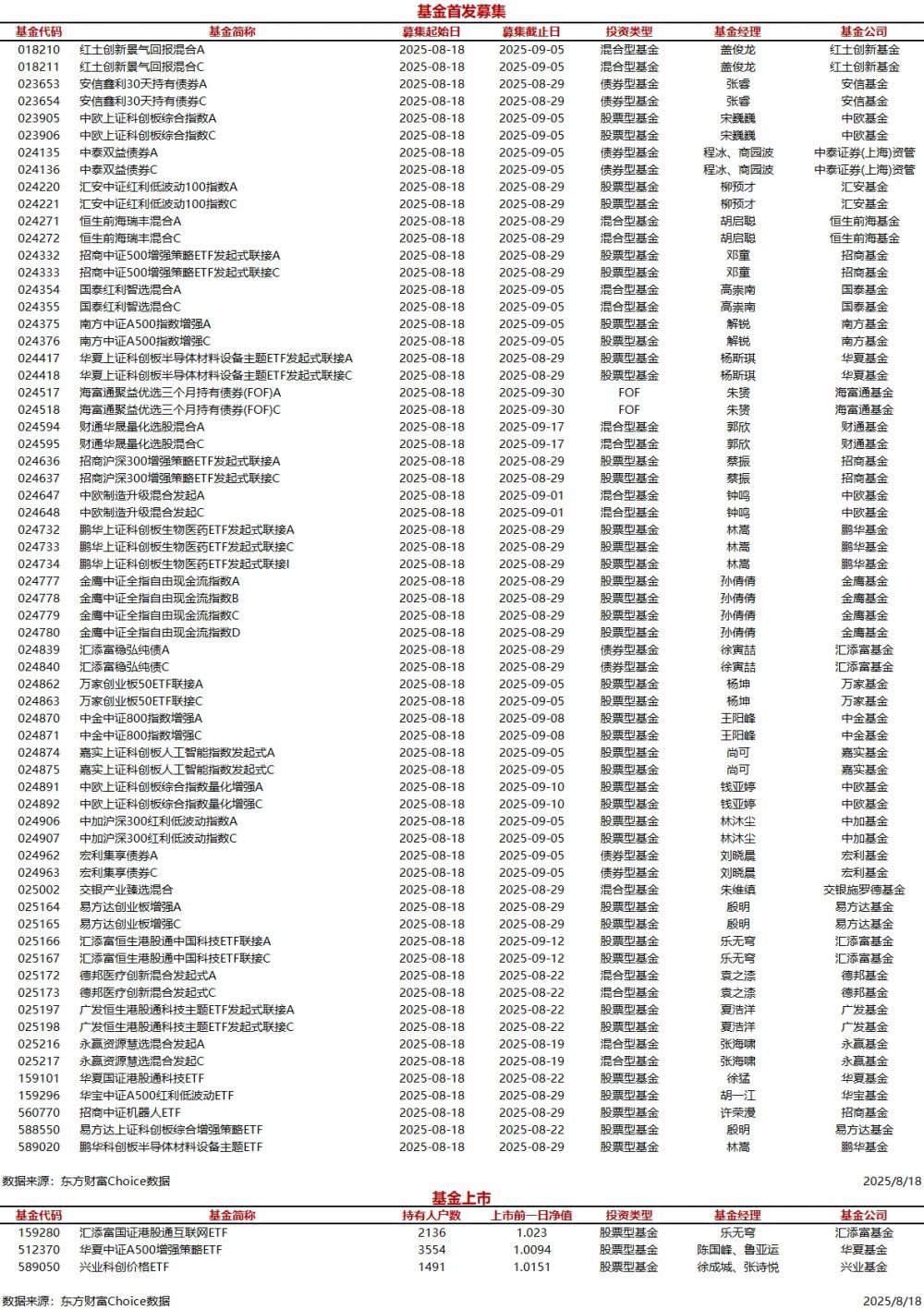 每经AI快讯,据东方财富Choice数据统计,今日共有65只基金首发募集(A/C类分开计算),包括40只股票型基金、15只混合型基金、8只债券型基金和2只FOF。另外,今日有3只基金上市。 ![]() |