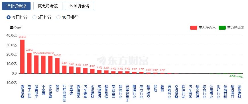 A股三大指数今日延续强势表现,沪指一举创出2015年8月以来的十年新高,北证50创历史新高,深成指、创业板指均突破去年10月8日高点。截止收盘,沪指涨0.85%,收报3728.03点;深证成指涨1.73%,收报11835.57点;创业板指涨2.84%,收报2606.20点。沪深两市成交额达到27642亿,较上一交易日大幅放量5196亿。 行业板块呈现普涨态势,船舶制造、消费电子、玻璃玻纤、小金属、电源设备、软件开发、文化传媒、通信设备、电机、电子元件、电子化学品板块涨幅居前,仅煤炭行业、贵金属、化肥行业逆市下跌。 个股方面,上涨股票数量超过4000只,逾120只股票涨停。券商、金融科技等大金融股一度冲高,指南针、同花顺双双续创历史新高。液冷服务器等AI硬件股持续爆发,强瑞技术等20余股涨停。稀土永磁概念股表现活跃,北方稀土等涨停。 行业资金流向:35.84亿净流入通信设备 行业资金方面,截至收盘,通信设备、电子元件、消费电子等净流入排名靠前,其中通信设备净流入35.84亿。 ![]() 净流出方面,证券、化学制药、房地产开发等净流出排名靠前,其中证券净流出65.58亿元。 ![]() 今日要闻 见证历史!A股市值突破100万亿元大关 再破纪录 8月18日,A股继续大涨,上证指数续创阶段新高。证券时报记者根据实时数据统计,截至10点34分,A股公司A股市值总和突破100万亿元(以A股最新价*A股总股本计算),创历史新高,这也是A股历史上首次突破100万亿元大关。 创506个交易日新高!百元股三大特征锁定 潜力标的仅17只(附名单) 8月以来,A股市场百元股公司数量明显增加,其中8月15日,共有122股的收盘价不低于百元,创近506个交易日以来的新高。行业方面,这122股分布于16个行业,其中电子行业个股数量最多,达到36股;其次是计算机、医药生物行业,分别有19股、15股;机械设备行业也有10股。 最新!A股业绩利好密集来袭 资金关注度持续提升 随着A股上市公司进入半年报密集披露期,市场资金对业绩主线的关注度持续提升。统计显示,截至发稿,已有525家A股上市公司披露了半年报,其中超过380家公司归母净利润实现同比增长,88家公司的增幅超过100%。多家券商机构指出,目前来看,A股上市公司半年度业绩整体表现超预期,尤其是制造业与科技板块的盈利韧性十足。 突然20%涨停!一则传闻彻底引爆!影视狂飙 周末,一则涉及影视剧市场的传闻流传坊间。今天早上,该传闻彻底引爆市场,板块个股全线飙涨。华西证券认为,传媒板块可参考游戏行业复苏路径:2023年起版号放宽后,2024年游戏行业净利润同比增长472%,2025年半年报净利增速达191%,验证内容产业对政策敏感度高。影视行业若审批效率提升、题材限制放宽,或复制游戏行业快速反弹逻辑。 华尔街“大空头”做多中国 买入阿里巴巴和京东的看涨期权 8月17日,据最新披露的13F文件显示,好莱坞电影《大空头》原型的对冲基金经理迈克尔·巴里(Michael Burry)在第二季度对中概股采取了“空翻多”的策略,买入阿里巴巴和京东的看涨期权。 机构观点 中信证券:供给在内反内卷、需求在外出利润 梳理今年以来四个因为出口管制或配额导致出口利润贡献激增的行业(例如稀土、钴、磷肥、制冷剂),发现历史上通过控制供给或出口来控制全球市场价格并提升稳态利润是可行的,但共性是需要生产国在全球拥有极高份额和附带的议价能力。 去年底铝材、铜材等行业取消出口退税,虽然被动提高了现金成本,但也出现了一定的价格转嫁。这些现象背后的本质是稀缺资源和战略优质产能在未来要逐步从份额争夺开始步入利润变现。 中国制造业增加值全球占比已经超过30%,产业结构升级也有长足进步,但利润率仍呈现逐年下降趋势,卷份额已经步入尾声,且未来面临越来越多的贸易摩擦风险,利用全球份额变现利润才是核心议题。 供给在内反内卷、需求在外出利润,这可能是未来一条相当重要的中长期投资线索。配置上,短期依然建议投资者继续聚焦创新药、资源、通信、军工和游戏五大行业,避免过多高切低交易。 国泰海通:股指还有新高 展望后市,继续看升中国股市前景,A股股指还有新高。一直以来,市场认为影响股票估值的因素主要在公司的业绩、无风险利率、风险偏好等。事实上非常容易被忽视,但绝不能忽视的是制度变化,这个因素在中国市场比其他市场更重要,在特定时期甚至起到决定性的作用。 如今,“提高投资者回报”的资本市场制度改革,改变的不仅仅是制度,还有社会各界对中国资产的价值观念,以及降低股市的风险评价。由此,中国转型加快、无风险收益下沉与资本市场改革共同构筑起中国股市“转型牛”的基石,A股股指还有新高。 中国历史上曾有多次与资本市场改革相关的股市走牛案例,远有2005年的股权分置改革;近有2019年注册制改革与科创板设立。2025年以来全国各地客户拜访中,我们更坚信了中国“转型牛”之大势所趋。无风险收益下沉与资本市场改革,中国行情也将更全面。 银河证券:延续热点快速轮动 过去一周全球金融市场都精彩纷呈,美元指数崩跌至97.85,人民币强势升破7.18,全球资本正以十年未见的规模向东迁徙,投资者先要有大势的宏观认知。 而微观交易层面,市场呈现增量流动性驱动的行情,而风险偏好的变化又显著主导着当前市场节奏。目前看,8月处于政策空窗期和中报集中披露期,市场或大概率延续热点快速轮动。 操作层面,当前不要用所