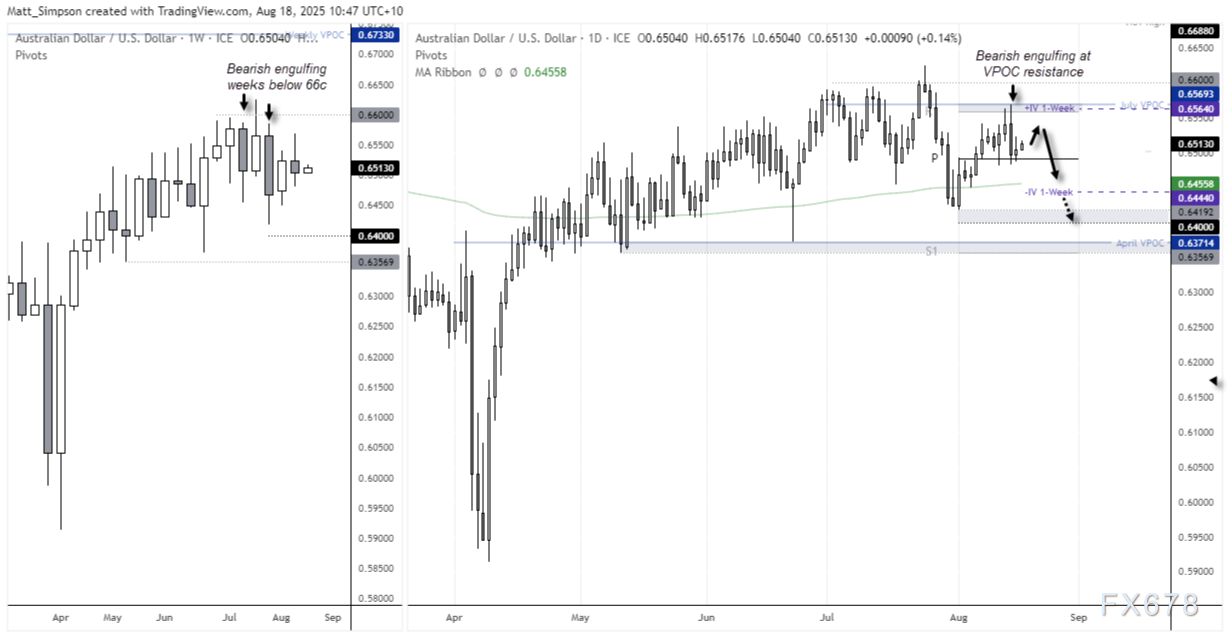 澳元兑美元迎来关键一周,交易员正权衡杰克逊霍尔央行年会与新西兰联储预期降息的影响。随着下行风险加剧,若美联储抵制特朗普要求激进宽松的压力,澳元恐将面临严峻考验。周一(8月18日)亚市时段,澳元兑美元最新交投于0.6515附近,较前一交易日纽约汇市收盘价0.6504微涨0.15%。盘中最高触及0.6521,最低下探0.6506,整体维持窄幅震荡格局。 ![]() 今年的杰克逊霍尔央行年会(8月21日-23日)备受瞩目。这一盛会历来是美联储引导长期货币政策预期的平台,而今年更恰逢美联储面临特朗普政府强力的降息施压。据彭博社报道,今年媒体报名人数远超杰克逊湖旅馆接待能力,可谓一房难求。 美联储此次可谓进退维谷——既要消化异常疲软的非农就业数据(7月仅新增7.3万人,远低于预期的10.6万;6月数据更从14.7万大幅下修至1.4万,直接导致劳工统计局局长遭特朗普解职),又需应对持续升温的通胀压力(核心CPI同比3.1%创五个月新高,环比0.2%达34个月峰值;PPI环比更飙升0.8%,核心PPI涨0.6%)。 考虑到特朗普即将提名下任美联储主席,本次年会恐难释放市场期待的超鸽派信号,这可能为美元提供支撑。当然,若美联储意外抛出多次降息路线图,美元或将陷入真正的困境——这种戏剧性场景无疑更令人期待。 美国就业和PMI数据备受关注 交易员们正急切地搜集任何可能指向杰克逊霍尔年会政策线索的蛛丝马迹。在此背景下,当周初请失业金数据的重要性陡然提升——鉴于此前非农数据的疲软表现,美元空头可能抓住任何就业市场走弱的迹象大做文章。标普全球PMI初值报告也将受到严格检视,特别是新订单、出口订单、就业及“支付价格”等分项指标,都将成为市场解读美联储政策走向的重要密码。 新西兰联储将降息25个基点 当前市场普遍预期新西兰联储将于周三(8月20日)降息25个基点至3%——路透调查的30位经济学家中,有28位支持这一预期。澳元兑纽元汇率正试探性突破1.10关口,但若要使涨势延续,新西兰联储或需保持明确的宽松政策倾向。 ![]() 澳元与纽元的联动性持续领跑,数据显示澳元兑美元与纽元的关联度,已显著超越其与美元指数或人民币的联动水平。 过去10个交易日中,澳元兑美元与华尔街主要股指(标普500、SPI 200、沪深300)的相关性转为负值,这明确释放出风险情绪已非澳元走势主导因素的信号。 原油与澳元的相关性既微弱又不稳定,而黄金与澳元一度稳固的联动关系也已明显弱化。 ![]() 上周看空情绪持续发酵,大型投机者净空头规模创16个月新高,资产管理机构净空头持仓亦触及14个月峰值。两大群体净空头增长均由新增空头仓位驱动。未平仓合约同步走高的趋势,更揭示本轮跌势背后存在新开空头头寸的推动。 这一持仓格局强化了技术面的看跌信号——两周前的“看跌吞没”形态意义重大,而上周的微弱反弹很可能只是新一轮下跌前的技术性回调。 ![]() 澳元兑美元技术分析 令人玩味的是,周四“看跌吞没”形态的高点精准承压于7月成交量控制点(VPOC)阻力位,而周五在月线枢轴点上方的“倒锤线”形态正尝试推动价格回升。但鉴于周线与日线时间框架已同步形成“更低高点”的看跌吞没形态,因此倾向于判断汇价将开启新一轮跌势,下探0.6400关口。 需特别注意:受鲍威尔周五杰克逊霍尔讲话影响,1周隐含波动率带宽显著扩大。这意味着行情可能反复无常,事件前的交易难度陡增——并非所有投资者都适合参与。但若在关键阻力位附近出现明确反转信号,我的看空立场将得到强化。 倘若价格走势暗示正确,美联储的鸽派程度恐难达到特朗普政府期望,这可能成为美元走强、澳元承压的催化剂。 ![]() 北京时间11:35,澳元兑美元交投于0.6515/16。 ![]() |