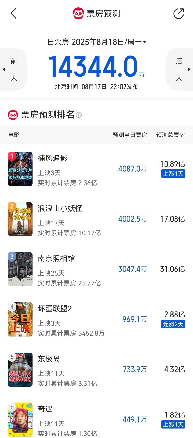 据灯塔专业版,截至8月18日14时26分,2025年暑期档(6月-8月)总票房(含预售)突破100亿元。《南京照相馆》《浪浪山小妖怪》《长安的荔枝》《侏罗纪世界:重生》《罗小黑战记2》暂列档期票房前五名,其中国产片占据四席。 ![]() 今日A股影视股盘中强势拉升,多股涨停。截至收盘,华策影视(300133)、华智数媒(300426)20CM涨停,欢瑞世纪(000892)、慈文传媒(002343)、吉视传媒(601929)涨停,芒果超媒(300413)涨近17%,百纳千成(300291)涨超14%,华谊兄弟涨近6%。 头部影片带动暑期档持续走高,连续31天单日大盘破亿 2025年暑期档票房持续走高,离不开头部电影的带动作用,其中国产影片的贡献尤为突出。记者梳理发现,从暑期档排名前十的影片来看,票房合计超72亿元。其中,国产影片共6部,贡献票房近55亿元;《南京照相馆》单部影片票房超25亿元,占据整个暑期档票房的四分之一。从猫眼最新预测票房来看,《南京照相馆》、《浪浪山小妖怪》、《捕风捉影》位列前三,预测票房分别为31.06亿元、17.08亿元、10.89亿元。 ![]() 总体来看,今年暑期档呈现“前冷后热”的局面。从单月票房表现来看,据猫眼专业版数据(截至8月18日15时),8月票房超40亿元,7月票房40.47亿元,6月票房19.07亿元。据此,7月和8月贡献暑期档超八成票房收入。 就8月来看,据猫眼专业版最新数据,《南京照相馆》《浪浪山小妖怪》《东极岛》《捕风捉影》《罗小黑战记2》分列票房榜前五位,票房占比依次为41.4%、24.8%、8.2%、5.8%、3.7%,排片占比分别为30.6%、20.8%、10.3%、6.5%、4.8%。 关于暑期档表现,猫眼娱乐市场分析师赖力对澎湃新闻表示,今年暑期档前半程市场表现相对不温不火,进口片整体表现优于国产片。进入后半程,国产片开始发力,随着《长安的荔枝》《南京照相馆》等多部相对较大体量的影片陆续上映,不仅带动了整个市场的观影热度,同时也抬升了单日大盘的表现。截至8月17日,2025年暑期档已经连续31天单日大盘破亿。 暑期档电影涉及哪些公司? 值得一提的是,继今年春节档之后,暑期档已诞生《南京照相馆》、《浪浪山小妖怪》两部票房超10亿元电影。 具体来看,《南京照相馆》7月25日正式上映,当前票房25.78亿元,刷新中国影史暑期档历史片票房纪录,且是今年春节档之后票房最高的电影,位列2025年电影票房榜第三,仅次于《哪吒之魔童闹海》的154亿元、《唐探1900》的36亿元。 公开资料显示,《南京照相馆》的出品方涉及多家上市公司。《南京照相馆》由中国电影(600977.SH)主出品,出品方还涉及上市公司幸福蓝海(300528.SZ)、万达电影(002739.SZ)、横店影视(603103.SH)、上海电影(601595.SH)等。从股价表现来看,今年以来,幸福蓝海股价已翻倍,上海电影累涨38.79%,横店影视累涨19.94%,中国电影累涨12.89%,万达电影累跌5.44%。 《浪浪山小妖怪》8月2日正式上映,当前票房10.18亿元,创下多项纪录。该影片在8月11日,累计票房突破5.74亿,超过《大鱼海棠》5.73亿元,登顶国产二维动画电影票房榜。又在8月15日,累计票房突破8.079亿(含预售),超越动画电影《铃芽之旅》,成为中国影史二维动画电影票房冠军。8月18日,该影片票房超《功夫熊猫3》,进入中国影史动画电影票房榜前十。 《浪浪山小妖怪》由上影集团主投主控,出品方涉及上美影、上影元、中国电影、华夏电影发行有限责任公司等。其中,上影元为上海电影控股子公司。票房持续拉升的同时,该影片IP授权同样引发关注。据上海电影方面此前透露,在IP授权衍生领域,《浪浪山小妖怪》与超30家知名企业达成合作,涵盖汽车出行、餐饮茶饮、图书出版、卡牌潮玩、互联网平台、便利店、主题餐厅等多个细分领域,其中17家为实体衍生品企业,随电影同期上新的授权衍生单品超400个。 此外,今年暑期档票房火热,口碑佳作不断。豆瓣最新评分显示,《南京照相馆》8.7分、《罗小黑战记2》8.7分、《浪浪山小妖怪》8.5分、《捕风捉影》8.1分、《戏台》8.0分。对此,灯塔专业版数据分析师陈晋对澎湃新闻表示,今年暑期档高分佳作影片数量较往年明显增长,上映后口碑持续扩散、多部影片评分上涨。赖力认为,“优质内容始终是吸引观众走进影院最重要的因素之一,观众们期待在电影院里不仅收获独特的视听体验,同时也能获得强烈的情感共鸣。” 分析称总票房有望提前超越去年 值得关注的是,截至目前,今年暑期档总票房与去年同期差距缩小至1.6亿元,去年同期(6.1-8.18)总票房101.66亿元。从平均票价来看,今年暑期档电影平均票价为37.3元,低于去年同期的40.8元。 当前距离2025年暑期档收官已不足两周,后续市场将如何表现?总票房能否超越去年暑期档的116.43亿元?对此,分析师普遍呈乐观态度。 陈晋表示,整体票房走势上,今年暑期档后劲十足:进入7月后连续三周大盘票房环比上涨,并连续三个周日大盘票房实现逆跌,单日大盘票房更是连续31天破亿。“当前距暑期档结束尚有十余天,总票房有望提前超越去年,为全年票房冲击500亿目标打下坚实基础。”陈晋称。 赖力认为,“按照目前暑期档的走势情况,今年暑期档还是有很大可能超过去年暑期档同期的116.43亿的,不过市场表现瞬息万变,究竟如何也要看接下来各个影片的具体表现情况。” 甬兴证券日前发布研报指出,随着以《南京照相馆》等为代表的影片陆续上映并取得较高的市场认可及票房收入,2025年暑期档有望后程发力,全年票房有望弹性增长