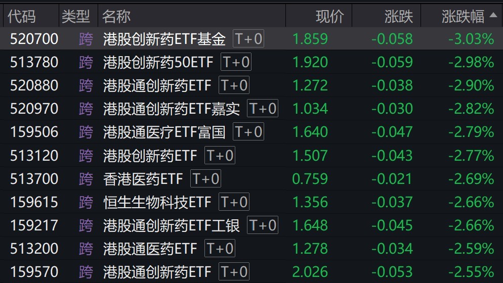 每经记者|叶峰 每经编辑|肖芮冬 港股创新药概念股午后走低,中国生物制药跌超7%,信达生物、药明生物、三生制药、药明康德跌超4%。 受盘面影响,多只港股创新药相关ETF跌约3%。 有分析人士表示,今年以来跨国药企大幅增加在中国的创新药专利的采购,1-5月采购金额已接近2024年全年水平,验证了我国创新药在国际市场上的竞争力。中长期来看,大型跨国药企加快从我国采购创新药专利的趋势有望持续。 |