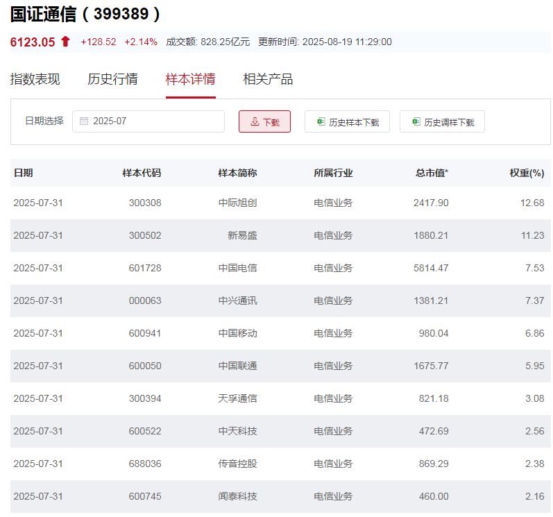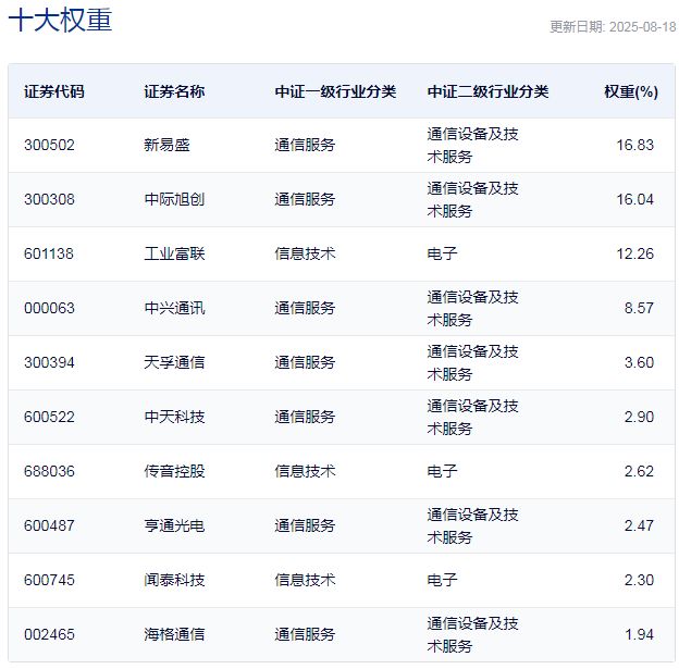 每经记者|刘明涛 每经编辑|肖芮冬 今日上午,CPO概念股继续大涨,中际旭创、新易盛以及天孚通信再创新高。ETF市场方面,通信ETF(515880)半日涨幅达到3.4%,处于领涨位置。 投资逻辑来看,近期海外CSP各巨头AI算力部署计划持续超预期,已是对算力需求的最有力说明。比如,Meta于7月宣布将建造全球最大数据中心集群,其中Hyperion数据中心未来计划扩展到5GW规模;OpenAI CEO奥尔特曼更是在访谈中强调“由于产能受限和GPT运营需要更多GPU,OpenAI计划继续筹集数万亿美元建设数据中心”。AI已成为巨头输赢的主导主题,企业布局AI重要性凸显。目前整个AI算力行业产业景气度已清晰明确,算力将成为未来重要资源之一。 点评:通信ETF(515880)今日上午大涨3.4%,规模为25.25亿份,半日成交金额为5.86亿元,交投相对活跃。该ETF追踪的是中证全指通信设备指数。 中证全指通信设备指数从中证全指样本股中按中证行业分类方法选出通信设备行业股票。前十大权重股涵盖了大量5G概念股,指数历史表现优异,成长性高。 中证全指通信设备指数主要权重股 点评:通信设备ETF(159583)半日涨幅为2.18%。该ETF规模较小,只有1.19亿份,半日成交金额为5184.6万元,追踪的是中证通信设备主题指数。 中证通信设备主题指数选取50只业务涉及通信设备制造、通信技术服务以及卫星互联网建设等领域的上市公司证券作为指数样本,反映通信设备主题上市公司证券的整体表现。 中证通信设备主题指数主要权重股 点评:电信ETF(159507)今日上午涨幅为2.03%,规模仅0.31亿份,追踪的是国证通信指数。追踪该指数的ETF还有通信ETF(159695)。 国证通信指数选取沪深北交易所通信产业相关上市公司编制而成,用以反映中国证券市场上通信行业证券价格变动的趋势,并为市场增加新的指数投资品种。 国证通信指数主要权重股 封面图片来源:图片来源:视觉中国-VCG211478322341 |
