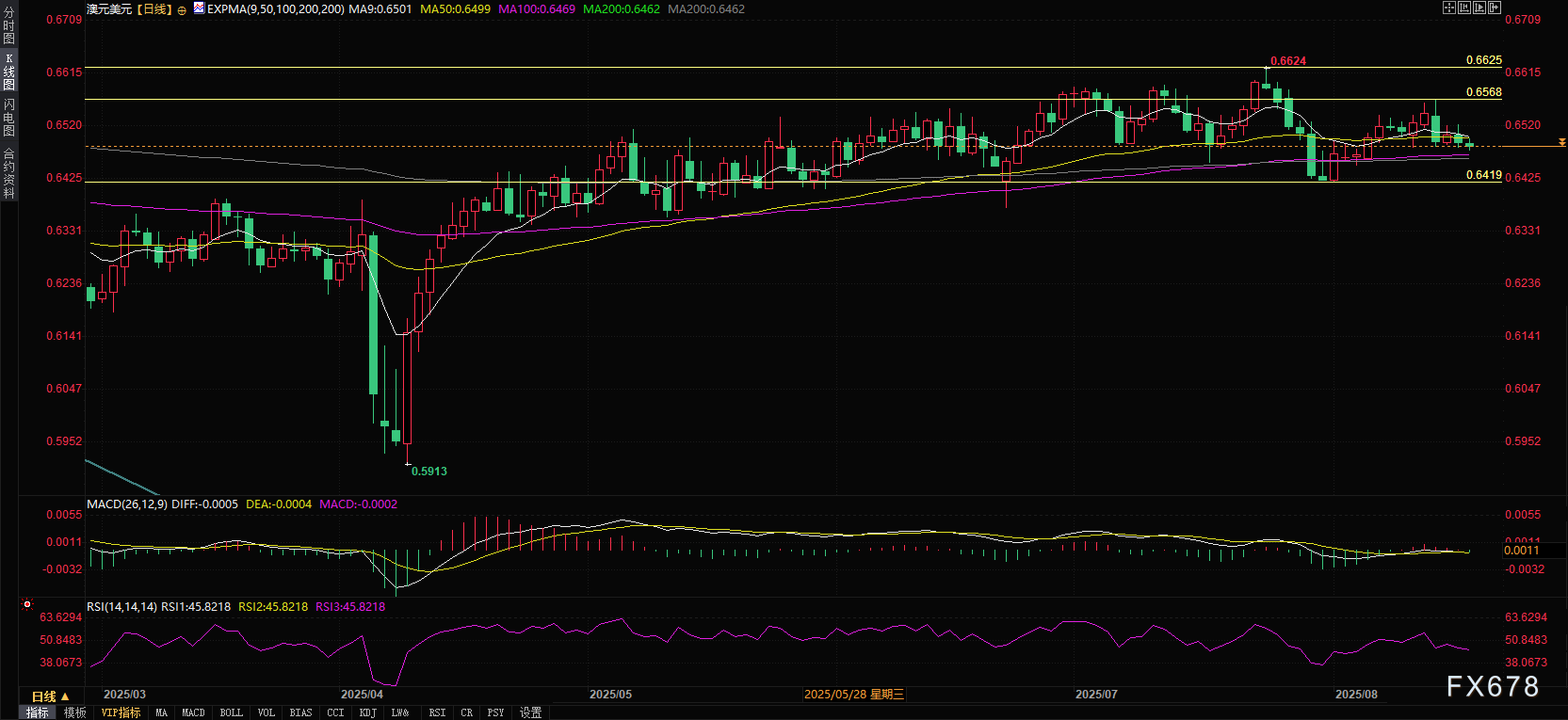 周二(8月19日)欧洲早盘时段,澳元连续第二个交易日延续跌势,交投于0.6491,较前一日收盘价0.6493微跌0.04%,达13日以来最低,日内波动区间:0.6476-0.6497。尽管西太平洋银行消费者信心指数显著改善——8月飙升5.7%至98.5(7月仅微增0.6%),澳元兑美元汇率仍持续走低。该指数已创下2022年2月以来新高,主要得益于澳洲联储(RBA)自1月以来累计降息75个基点。 ![]() 澳元兑美元汇率下跌的同时,美元则在地缘政治进展推动下持续走强。美国总统特朗普表示将很快启动美俄乌三方领导人峰会的筹备工作,并透露普京已同意接受安全保障条款,各方需就可能的领土交换进行磋商。 澳元下跌,美元因地缘政治发展而趋稳 美元指数(DXY)交投于98.00附近,该指数衡量美元兑六种主要货币的表现。交易员正等待杰克逊霍尔经济政策研讨会,尤其是美联储主席鲍威尔的讲话,以获取9月政策决策线索。 乌克兰总统泽连斯基周一晚间强调需要实现真正和平,欢迎美国参与提供安全保障,并确认了大规模对美武器采购计划。美国国务卿马可·卢比奥周二表示,将联合欧洲盟友及非欧洲国家共同为乌克兰制定安全保障方案。 特朗普政府已扩大钢铁和铝制品50%进口关税的适用范围,新增407项美国协调关税目录商品,新规于8月18日生效。特朗普总统还向记者表示,计划近期宣布更多钢铁关税措施,并拟对半导体进口加征新关税。 近期美国经济数据强化了美联储的鸽派政策预期。CME美联储观察工具显示,市场预计9月降息25个基点的概率达84%。美国财政部长斯科特·贝森特周三接受采访时表示,短期利率应比当前有效基准利率4.33%低1.5-1.75个百分点,并称澳洲联储可能在9月选择降息50个基点。 贝森特还透露,美中贸易官员将在未来两三个月内再次会晤商讨经贸关系前景。 澳洲联储周二如预期宣布降息25个基点,在8月政策会议上将官方现金利率(OCR)从3.85%下调至3.6%。 澳元在0.6500附近跌破汇合区 澳元兑美元交投于0.6490附近。日线图上的技术分析表明,由于该货币对位于九日指数移动平均线(EMA)下方,短期价格动能较弱。此外,14天相对强弱指数(RSI)仍低于50水平,表明市场偏见看跌。 下行方面,澳元兑美元可能下探8月1日创下的两个月低点0.6419区域,若跌破该水平,或将进一步测试0.6372的三个月低点。 即时阻力位出现在心理关口0.6500,恰好与50日均线和9日均线对齐。突破这一关键阻力区域可能改善中短期价格动能,并推动该货币对瞄准8月14日创下的月度高点0.6568,进而挑战7月24日录得的九个月高点0.6625。 ![]() ![]() |