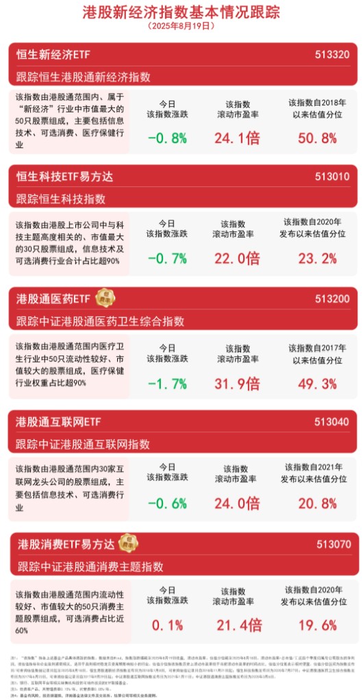 今日港股震荡调整,南向资金全天净买入超185亿港元。截至收盘,中证港股通消费主题指数上涨0.1%,中证港股通互联网指数下跌0.6%,恒生科技指数下跌0.7%,恒生港股通新经济指数下跌0.8%,中证港股通医药卫生综合指数 ...