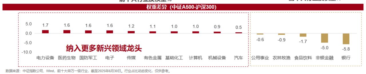 每经编辑|肖芮冬 针对近期市场的上涨,分享两篇比较有意思的研报。 第一篇是中信证券发表的《水牛行情五问》,认为当前市场已经演绎出比较典型的“水牛”特征。所谓“水牛”,给出的界定则是“基本面与流动性的背离”。 复盘2010年以来所有基本面和流动性阶段性背离的“水牛行情”可以发现,基本面下行期指数能连续上涨,要么是有重磅宏观政策出台,要么是流动性迎来全面改善的拐点,且持续时间通常不超过4个月,本轮“水牛行情”能否演化为持续时间更久的全面牛市需要观察后续基本面(即使是结构性的)好转情况。 如果以今年6月作为本轮市场从存量转为增量的起点(以机构票、量化票、保险票等不同风格板块不再相互虹吸而是同步上涨为特征),那么目前“水牛行情”才持续不到2个月,并且未来我们还是可以期待会有增量政策进一步推动基本面预期改善。 第二篇是广发证券《流动性推升牛市,行业轮动有何特点?》,对历史上四段比较明显的流动性驱动的牛市进行复盘,并将流动性驱动下的区间行情分为快速轮动期和持续主线期两个阶段。 快速轮动期: 几乎所有风格都能轮动到,但持续性不强,典型的比如2005~2006年和2014~2015年轮动前半段每个月的领涨行业基本都不一样。 金融或者周期往往是会率先启动,一方面上述板块估值较低,同时又对金融政策的变化较为敏感,另一方面,对指数拉动作用也较强,容易进一步强化牛市预期,吸引更多的增量资金。 持续主线期: 尽管全A基本面并没有改善,但部分细分方向可能在政策性提振或者产业周期支撑下,率先获得基本面改善预期,从而成为市场持续性较强的主线。 综合上述两篇报告来看,从某种程度上来说,当下的A股,确实有点像是“基本面”与“流动性”的赛跑,且处于“快速轮动期”。 从年初火爆的AI,到后来的创新药、新消费、大金融,再到近期的反内卷、大基建……热点一个接一个。 行情轮动得比电风扇还快,机会虽多,但是想要抓住,难度很大。这种情况下,如果行业买不对的话,投资体验可能就会比较糟糕。 所以,即便是上证指数已经站上3700点,但对不少投资者来说,依然不知道要配什么才是稳妥的选择。其实,在这种环境下,选择宽基指数进行配置,是最省力也最不容易出错的。 由于宽基指数覆盖范围广,所以不用特地担心单个行业的输赢,也避免了在市场上涨时候会缺席的焦虑。毕竟作为宽基指数,如果整个市场往上走的话,宽基指数是不会缺席的。 那么市场上宽基指数众多,该如何选择呢? 在中证A500指数出来之前,大部分人在选择底仓配置时都会优先考虑沪深300指数类基金,原因无外乎表现稳健、流动性好等特点,在多变的市场中,能够赚取一个贝塔收益。 而中证A500指数的出现,为底仓配置提供了一个新选择,并且还是一个适时而生的新选择。 第一,行业配置更为均衡 中证A500指数与其他主要宽基指数相比,行业配置更为均衡且覆盖广阔,其成份股不仅囊括市值超千亿的大盘蓝筹股,同时也涵盖市值200亿以下的中小盘股,市值覆盖更为广泛;沪深300指数成份股则全部集中在市值200亿元以上的范畴。 数据来源:中证指数有限公司,前十大申万一级行业,截至2025年6月30日第二,新质生产力含量更高 中证A500指数体现了行业中性的策略,优先纳入各细分行业龙头。值得关注的是,中证A500指数的新质生产力含量更高。相比沪深300指数,中证A500指数在非银金融+银行+食品饮料上减少了11%的权重,均匀分配到其余新兴行业。所以,虽然同为大盘价值指数,中证A500相对更成长一些,或在市场反弹中展现出更大的弹性。 第三,历史上“顺风能跟涨,逆风不掉队” 基于更均衡、更多新质生产力的特点,也让中证A500在不同行情环境下有着更强的适应力。 比如说今年上半年,金融板块持续上涨,中证A500指数在比沪深300指数少配了近10%金融的情况下,仍然以0.47%的收益率跑赢了沪深300的0.03%。(来源:Wind) 也就是说,虽然中证A500在银行等金融板块低配了近10%,但这些权重分配到了表现更好的行业,也就带动了整个指数的表现,其中计算机、传媒、电子、军工超配比例较高。 数据来源:Wind,指数表现区间为2024/9/23-2025/6/30,权重截至20250630。行业占比和行业表现动态变化,历史表现仅供参考,不预示基金未来表现。从收益上来看,历史数据测算显示,叠加长期持有具备平滑市场波动、享受复利效应、降低交易成本等优势,长期持有中证A500指数收益率或高于短期持有。根据Wind数据,截至2025年6月30日,中证A500指数基日以来涨幅高达363.05%,而同期沪深300、中证800指数收益率分别为293.61%、326.30%。 那么,作为普通投资者,该如何基于中证A500指数构建投资组合,来更好地适应当下“电风扇”般的市场环境呢? 首先,在做任何投资前,都要对自身的风险承受能力和财务状况进行评估,选择适合自己的才是最重要的。 其次,当前行业轮动速度较快,在策略层面不宜过于激进,在任一资产上的过多配置均有可能承担回撤风险。对于绝大多数人来说,可以采用股债商结合的策略进行布局。 权益资产方面,可以选择像中证A500这样的全市场宽基指数,配置中证A500ETF(159338)及其联接基金(A类022448,C类022449,I类022610),追求跟住市场主要趋势和整体表现,避免踏空行情。 债券市场方面,则可以布局十年国债ETF(511260),十年国债收益率作为债券市场的基准,兼顾底仓防守和一定的久
