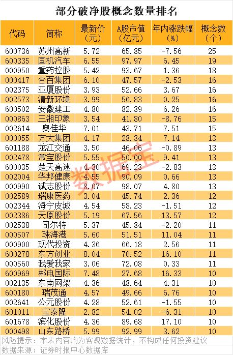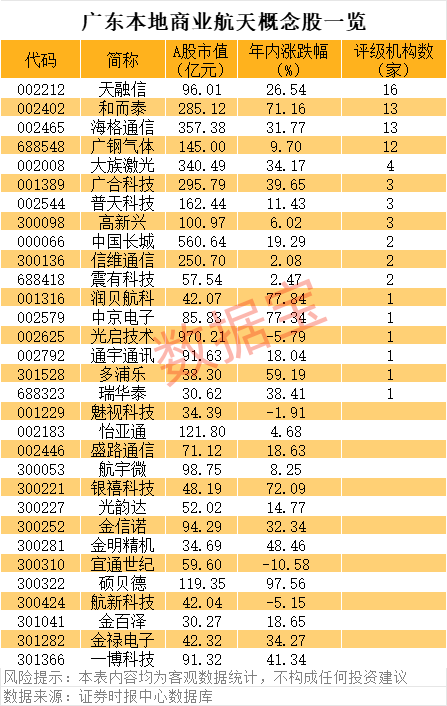 目前两市破净股仅剩300余只。 广东发布商业航天高质量发展政策措施 盘后又有利好消息。 广东省人民政府办公厅印发《广东省推动商业航天高质量发展若干政策措施(2025—2028年)》的通知(以下简称《通知》)。 《通知》提出打造商业航天应用“首场景”。加快推动卫星互联网服务在低空经济、移动通信、物流运输、智慧城市、太空挖矿、太空旅游、应急救援等前沿领域落地一批重大应用场景创新示范项目。 《通知》鼓励企业聚焦可重复使用液体火箭发动机、新一代低成本卫星和关键载荷、卫星星座组网与测运控、直连卫星通信等领域开展核心技术攻关,以应用基础研究、创新产品研发和技术验证示范为重点,优先纳入省、市相关科技计划项目支持方向。 《通知》支持企业申报“国家重大科技专项”“国家重点研发计划项目”“国家国防科技项目”,符合配套条件的国家重大科技专项项目,省级按照规定给予不超过50%的配套资金支持。支持企业加大研发投入,落实企业研发支出100%税前加计扣除政策。 广东本地商业航天概念股有望受益。据证券时报·数据宝统计,属于广东省的商业航天概念股合计有31只,其中天融信、和而泰、海格通信、广钢气体等个股评级机构数较多。从概念相关性来看,海格通信、普天科技、信维通信等个股机构研报提及相关业务布局。 德邦证券表示,海格通信控股子公司驰达飞机承制“九天”无人机,在军民两端有望充分受益。同时公司也是全频段覆盖的无线通信与全产业链布局的北斗导航装备研制专家、电子信息系统解决方案提供商,是行业内用户覆盖最广、频段覆盖最宽、产品系列最全、最具竞争力的电子信息企业之一,优势明显。 ![]() 破净股名单曝光 牛市破净股、低价股将逐渐被消灭? 目前A股市场破净股仅剩300余只,较这一轮行情启动前数量大幅下降,去年9月23日破净股数量一度超过800只。另外,以上一轮牛市(2013年至2015年)为例,到2015年6月12日收盘,市场中破净股数量为0。 按申万所属一级行业划分,目前仍破净的个股中,银行股是破净高发地,共有41只个股上榜,破净股数量最多;房地产、建筑装饰、交通运输分别有40只、25只和23只个股上榜,数量位居第二、第三、第四位。 从具体个股来看,市净率最低的是美凯龙,最新收盘价为2.94元,市净率不到0.28倍;其次是金地集团,最新收盘价3.97元,市净率0.31倍;*ST天茂最新收盘价1.58元,市净率0.36倍,位居第三。 值得注意的是,这些个股大多业绩较差,因此其真实净资产可能并不如报表那么高。比如美凯龙半年报预亏15.9亿元至19.2亿元;金地集团预亏34亿元至42亿元;*ST天茂预亏5亿元至7.5亿元。 破净+低价+低市值的热门股出炉 剔除半年报预亏股以及ST股后,最新收盘价不足10元、A股市值不足百亿元、年内股价下跌或涨幅不足20%且有10个及以上概念的破净股,合计有30只。 从市值角度来看,郴电国际和方大集团市值均不足30亿元,三湘印象、奥佳华、瑞康医药、司尔特等市值均不足50亿元。 从概念数量来看,苏州高新最多,有25个概念,包括国防军工、低空经济、水利建设、商业航天、绿色电力、芯片等;国机汽车有19个概念,包括车联网、机器人、工业母机、特斯拉等。 ![]() (文章来源:数据宝) |