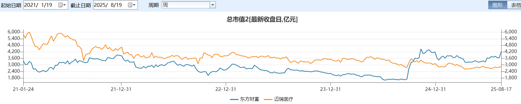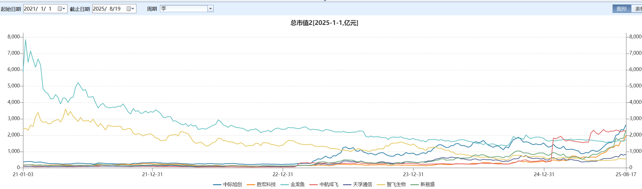 中际旭创(300308.SZ)坐上创业板“探花”宝座,东方财富(300059.SZ)则稳居“榜眼”,创业板市值前三甲的座次,已经呈现出新格局。 8月18日,中际旭创的市值已超越迈瑞医疗,跃居创业板第三。截至当日收盘,创业板市值前五分别是宁德时代(300750.SZ)、中际旭创、迈瑞医疗、新易盛,总市值分别为1.29万亿、4401亿元、2888亿元、2869亿元、2427亿元。 8月19日,AI硬件板块高开高走,“易中天”中际旭创、新易盛、天孚通信(300394.SZ)均续创新高,中际旭创也进一步拉开了与迈瑞医疗的市值差距。截至收盘,中际旭创总市值超过3060亿元,迈瑞医疗市值2861亿元,中际旭创成为宁德时代和东方财富以外,创业板第三家市值超过3000亿的上市公司。 中际旭创问鼎探花 8月18日收盘,中际旭创市值为2888亿元,已超过迈瑞医疗的2869亿元。19日盘中,该股再度冲高,市值一度达到3083亿元,收盘时为3061亿元,位居创业板第三,较迈瑞医疗收盘市值高出222亿元。 AI科技龙头股数倍的涨幅,推动了创业板市值增长。今年1月2日收盘,创业板总市值12.47万亿元,当时,中际旭创、新易盛、天孚通信、胜宏科技的市值排名分别是第8、第15、第23、第39。 到了8月18日收盘时,创业板总市值达16.23万亿元,累计增长3.76万亿元,中际旭创、新易盛、天孚通信、胜宏科技(300476.SZ)的市值累计增长5106亿元,分列创业板市值第3、第5、第17、第8名。 拉长时间来看,2021年1月到2024年12月,金龙鱼、智飞生物等公司,还是创业板的“王者”。今年以来,AI算力行情持续演绎,近期更是呈现加速上涨,中际旭创、新易盛、胜宏科技的市值,也纷纷超越金龙鱼、智飞生物。 ![]() 从市值增长幅度来看,胜宏科技的增幅最大,从年初的363亿元增长到2000亿元,增加了1637亿元,增幅达到451%。其次为新易盛,由819亿元增长至2427亿元,增幅196%,增加1608亿元。中际旭创也实现翻倍,天孚通信则上涨约70%。AI硬件以外,中航成飞(302132.SZ)市值增幅也颇为惊人,该公司的总市值从年初424亿元涨至2294亿元,累计上涨1870亿元。 截至18日收盘,上述五家上市公司的总市值合计1.05万亿元,年内累计增长6977亿元,为创业板市值增长贡献约20%。 东方财富市值坐稳第二名 科技股以外,东方财富近几个交易日上涨后,总市值达到4400亿元以上,超过迈瑞医疗的2869亿元,占据创业板市值第二宝座。 第一财经记者统计发现,2021年-2024年同期(历年8月18日),迈瑞医疗的市值始终保持在3000亿元以上,并且始终高于东方财富约500亿-700亿元,两者市值曾经数次高度接近,但东方财富从未真正超越。期间,双方市值差距最大为2024年8月,当时迈瑞医疗的市值几乎是东方财富的一倍。 去年的“9.24行情”,成为东方财富争夺创业板市值第二的分水岭.去年10月20日,东方财富市值首次超过迈瑞医疗,此后始终坐稳创业板第二名。去年9月24日-11月8日,东方财富在7周内上涨160%,一度创下历史最高的30.91元,总市值曾达4457亿元,超过迈瑞医疗1000亿元。 今年4月,沪指下探至3040点时,东方财富估值回调数月,但始终没有低于迈瑞医疗。6月以来,市场行情渐热,东方财富上涨约33%,而迈瑞医疗年内下跌6.7%,双方市值差距就此拉开逾1500亿元,使得东方财富坐稳了创业板市值第二宝座。 ![]() 消费医疗龙头掉队 在相当长的一段时间,创业板市值的前排宝座,是迈瑞医疗、金龙鱼(300999.SZ)、智飞生物(300122.SZ)等消费与医疗巨头的“专属领地”,这些龙头常年占据前三或前五,体现上一个周期里市场资金对“确定性”的偏好。 然而,AI浪潮风起云涌,硬科技创新时代下,旧格局已被打破,金龙鱼、智飞生物、爱尔眼科(300015.SZ)、亿纬锂能(300014.SZ)等纷纷掉队。 截至18日,金龙鱼和爱尔眼科的市值,分列创业板11位、13位,市值仍超千亿元,分别达1751亿元,1232亿元。智飞生物、亿纬锂能则跌破千亿,排名也大幅掉队,亿纬锂能目前排名15位,总市值970亿元。智飞生物2021年以来累计下跌75.16%,总市值跌至550亿元,位列27位。 此轮AI行情改写创业板市值版图的背后逻辑,是产业发展趋势带来业绩波动,资金偏好绩优新龙头,新旧龙头的市值差距不断拉大,表明科技是本轮行情的核心方向。 市场热捧光模块龙头,也是因为对业绩确定性的高预期,光模块、PCB是AI算力链的重要组成部分,二者深度绑定海内外AI算力基础设施的建设浪潮,并跟随AI服务器不断迭代,无论是出货量还是价值量,均得到大幅增长。 根据业绩预告,中际旭创预计上半年净利润为36亿-44亿元,同比增长52.64%-86.57%,业绩增长系800G等高端光模块销售大幅增长。新易盛的业绩增速更高,预计上半年净利润至少为37亿元,同比增幅为327.68%。 相比之下,旧龙头的业绩增速明显乏力。疫苗龙头智飞生物上半年出现上市以来同期首次亏损,半年报显示,该公司上半年实现营业收入49.19亿元,同比下降73.06%,净利润亏损5.97亿元,同比下降126.72%,为上市以来同期首亏。迈瑞医疗今年一季度的营收、净利润,分别同比下滑12.12%、16.81%,也是上市以来首次出现的情况。 (文章来源:第一财经) |