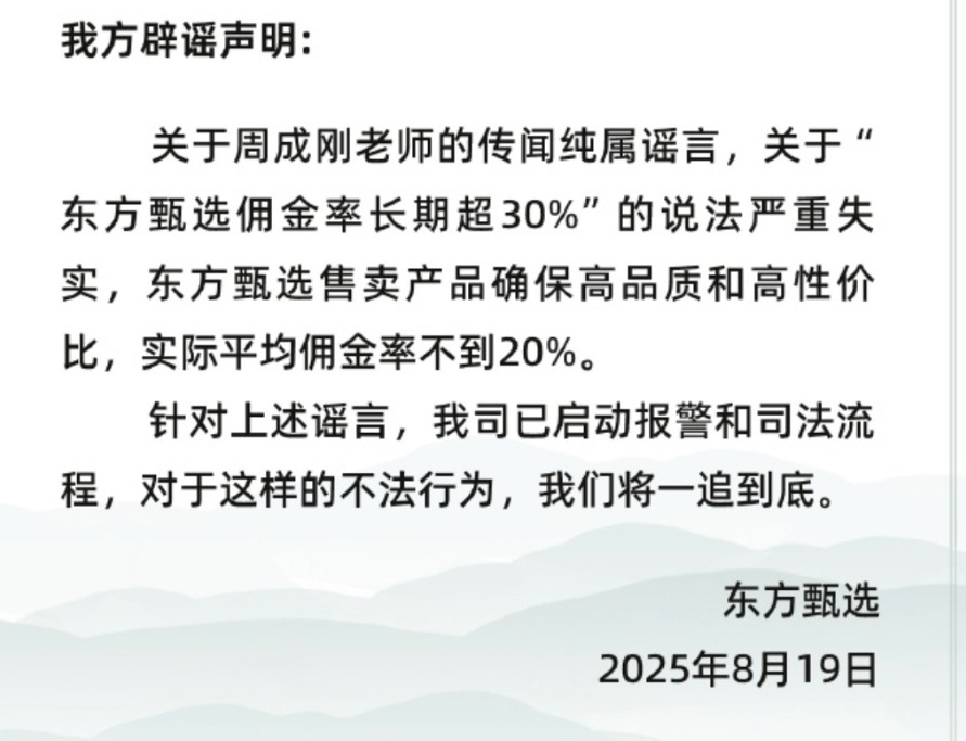 8月19日,东方甄选(01797.HK)股价盘中上涨逾23%,午后高台跳水,盘后跌20.89%。 消息面上,新东方CEO周成刚或涉关联交易被监管部门立案调查、东方甄选佣金率长期超30%的信息午后在网络端传播,触发市场恐慌情 ...