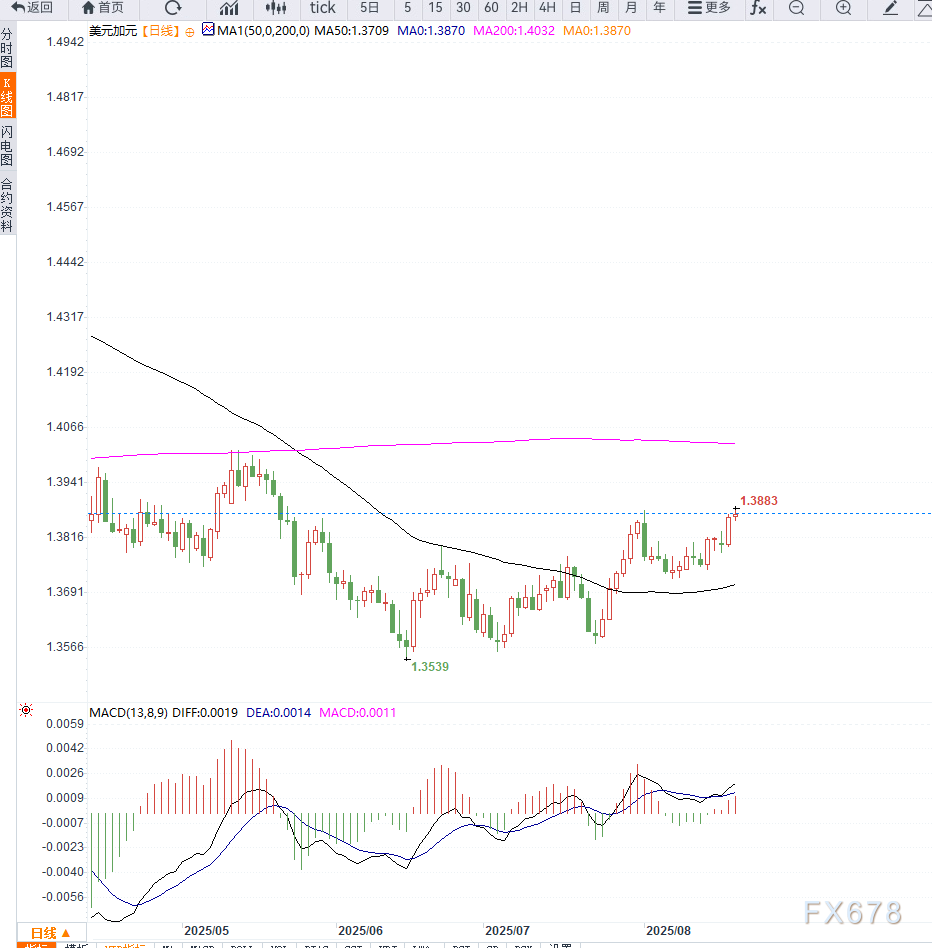 周三亚洲时段,USD/CAD继续上涨,交投在1.3870附近,录得连续第二日走强。美元在美联储7月会议纪要公布前获得支撑,而市场对周四杰克逊霍尔全球央行年会的关注度升温,投资者期待美联储主席鲍威尔的讲话为9月政策决策提供更多指引。 ![]() 另一方面,加元因加拿大疲软的通胀数据承压。数据显示,7月加拿大消费者物价指数(CPI)同比增长1.7%,较6月的1.9%放缓,符合市场预期; 环比上升0.3%,较上月的0.1%有所加快。核心CPI同比增长2.6%,环比仅上涨0.1%。整体表现强化了市场对加拿大央行(BoC)偏鸽派立场的判断,削弱了加元吸引力。 从日线级别观察,USD/CAD已连续两日收阳,并站上1.3850阻力位,短线技术面偏向多头。若汇价能稳固在1.3870上方,则有望进一步上探1.3920-1.3950区间。 下方支撑位则集中在1.3800整数关口以及1.3760一带,若跌破该区间,可能重新回测1.3700的支撑区域。整体来看,多头动能仍在积聚,但需关注美联储纪要带来的短线波动风险。 市场调查显示,分析人士指出:“加拿大通胀的回落为央行暂停加息提供了更多空间,而美元的避险买盘和政策不确定性,正推动USD/CAD向上突破。” ![]() 从市场逻辑来看,加拿大通胀放缓削弱了加元,而美元在美联储政策路径仍不明朗的背景下获得支撑,短期内USD/CAD上涨趋势仍将延续。但考虑到油价的反复波动可能为加元带来一定支撑,应关注能源市场和美联储会议纪要的双重影响。 ![]() |