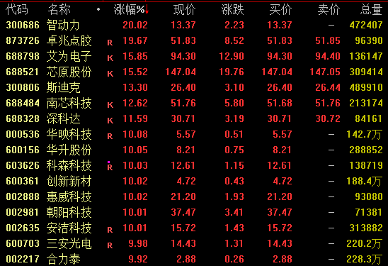 8月20日,A股午后全线走高,沪指涨逾1%,续创10年新高;科创50指数暴涨超3%;港股亦止跌回升,恒生指数尾盘翻红。 具体来看,沪指早盘弱势下探,午后在金融、半导体等板块带动下强势上攻,一度涨超1%最高攀升至3765.25点,续创10年新高;科创50指数较为强势。截至收盘,沪指涨1.04%报3766.21点,深证成指涨0.89%报11926.74点,创业板指涨0.23%报2607.65点,上证50指数涨1.23%,科创50指数涨3.23%,沪深北三市合计成交24489亿元,较此前一日减少逾1900亿元。 场内近3700股飘红,酒类股集体走高,酒鬼酒连续两日涨停,舍得酒业盘中触及涨停逼近年初高点;券商板块异动,哈投股份涨停;半导体板块拉升,盛科通信(688702)午后20%涨停,芯原股份一度20%涨停,寒武纪盘中最高涨近10%,站上1000元大关续创历史新高,市值超4200亿元;有色板块强势,浩通科技、有研粉材涨超10%,云南锗业连续两日涨停;消费电子概念活跃,卓兆点胶创出新高,科森科技斩获4连板。此外,今日登陆北交所的宏远股份上涨358%报42元/股,盘中一度涨超420%。 港股方面,泡泡玛特大涨超12%,股价突破300港元大关,创历史新高,最新市值4244亿港元;舜宇光学科技、老铺黄金一度涨超10%,小鹏汽车、中芯国际涨超4%。此外,翰森制药跌超7%。 酒类股爆发 酒类股今日再度走强,截至收盘,酒鬼酒连续两日涨停,会稽山亦涨停;舍得酒业涨超8%,盘中一度触及涨停;五粮液、贵州茅台涨约1%。 ![]() 近日以来,白酒板块逐步修复,指数稳步上涨,板块有望步入复苏通道。机构表示,在政策积极拉动内需+供给侧经营节奏良性的双侧驱动下,供需格局将逐步改善。当前白酒板块历经连续多季度回调,市场预期较低,部分头部企业估值回调至较低水平,优质资产底部逻辑明显,关注估值修复机会。 方正证券指出,今年以来,从中央到地方密集出台促消费举措,为行业复苏注入确定性。在宏观经济持续复苏的背景下,系列政策形成合力,为白酒行业构筑坚实底部。另外,自5月18日推出禁酒令以来,白酒宴席消费持续陷入低迷。7月下旬以来渠道反馈消费场景约束陆续放松,宴席与礼品场景消费持续复苏。同时叠加中秋节与国庆节将至,备货旺季在即,“场景修复+季节性催化”共振,终端动销有望进一步加速,行业基本面复苏动能有望持续强化。白酒当前估值已处底部,在政策回暖与基本面复苏双重驱动下,板块已完成筑底,估值重塑与业绩逐步修复可期。 半导体板块强势拉升 半导体板块盘中强势拉升,截至收盘,盛科通信20%涨停,续创新高;艾为电子、芯原股份涨超15%;寒武纪涨超8%,盘中一度涨近10%续创历史新高。 ![]() 值得注意的是,芯原股份午后快速涨停,但尾盘开板。近日,业内消息传字节跳动正与芯原股份联手设计一款先进的AI算力芯片。对此,字节跳动相关负责人回复证券时报记者称:“字节跳动与芯原股份并无AI芯片相关合作。” 对于该板块,机构表示,2025年,全球半导体增长延续乐观增长走势,2025年AI驱动下游增长。同时,政策对供应链中断与重构风险持续升级,国产替代持续推进。二季度各环节公司业绩预告亮眼,展望三季度半导体旺季期,建议关注存储、功率、代工、ASIC、SoC业绩弹性,设备材料、算力芯片国产替代。 消费电子概念活跃 消费电子概念盘中走势活跃,截至收盘,卓兆点胶涨近20%创出新高,艾为电子大涨超15%,斯迪克、南芯科技等涨超10%,科森科技涨停斩获4连板。 ![]() 有报道称,苹果iPhone 17已进入大规模量产阶段。富士康作为苹果iPhone的主要代工生产商,其郑州厂区正开展旺季招工。 机构表示,消费电子中最大的手机领域自2019年开始需求增速放缓,2023年随着华为的回归以及折叠屏、AI手机等概念成熟,手机销量恢复正向增长。除了手机之外,随着AR、MR等概念的推出,可穿戴设备领域增速更为可观,也逐渐成为消费电子材料领域的又一新的增长点。随着“国补”扩大到消费电子领域,2025年消费电子板块有望迎来快速增长。 (文章来源:证券时报) |
