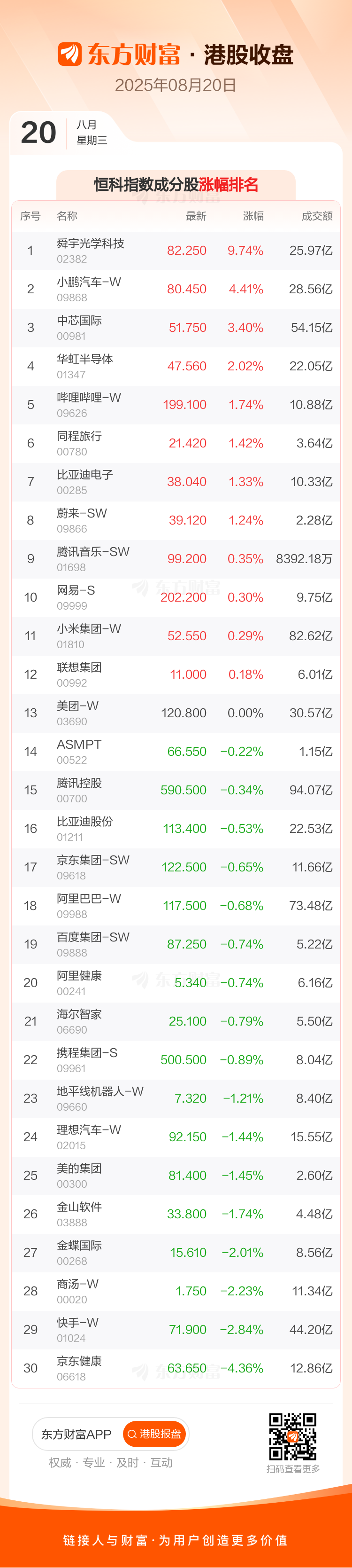 恒生指数收报25165.94点,涨43.04点,涨幅0.17%;恒生科技指数收报5541.27点,跌0.76点,跌幅0.01%。恒生指数成分股中舜宇光学科技、中芯国际、药明生物涨幅居前,翰森制药、京东健康、中升控股跌幅靠前。恒生科技指数成分股中舜宇光学科技、小鹏汽车-W、中芯国际涨幅居前,京东健康、快手-W、商汤-W跌幅靠前。 ![]() ![]() 免责声明:本文基于AI生产,仅供参考,不构成任何投资建议,据此操作风险自担。 (文章来源:东方财富研究中心) |