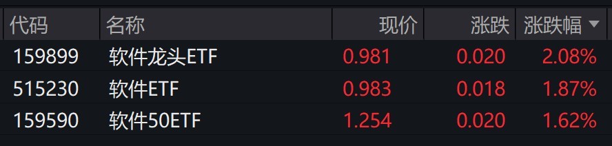 每经记者|叶峰 每经编辑|肖芮冬 软件概念股早盘走高,中国软件涨超5%,恒生电子、指南针涨超4%,科大讯飞、金山办公、用友网络涨超2%。 受盘面影响,跟踪中证全指软件指数的ETF涨约2%。 中证全 ...